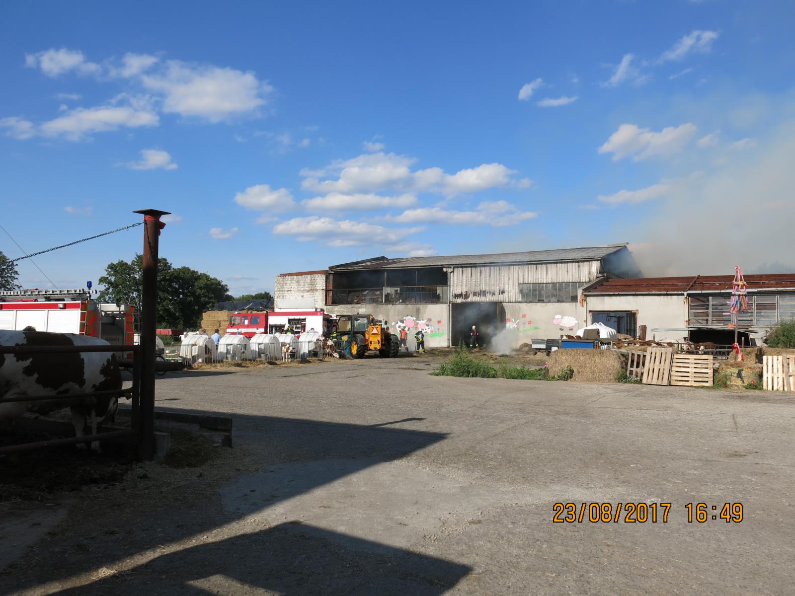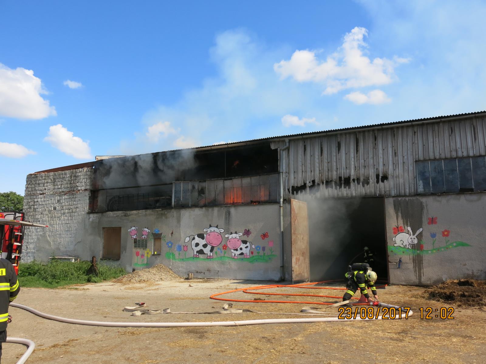 Již včera jsme Vás informovali o škodě přesahující dva miliony korun, zmiňovaná výše škody je na objektu, který je výrazně poškozen, dalších 150 tis. korun je vyčíslena škoda na balíkové slámě. Dle informací z vyšetřování k požáru došlo nedbalostí při svařování.