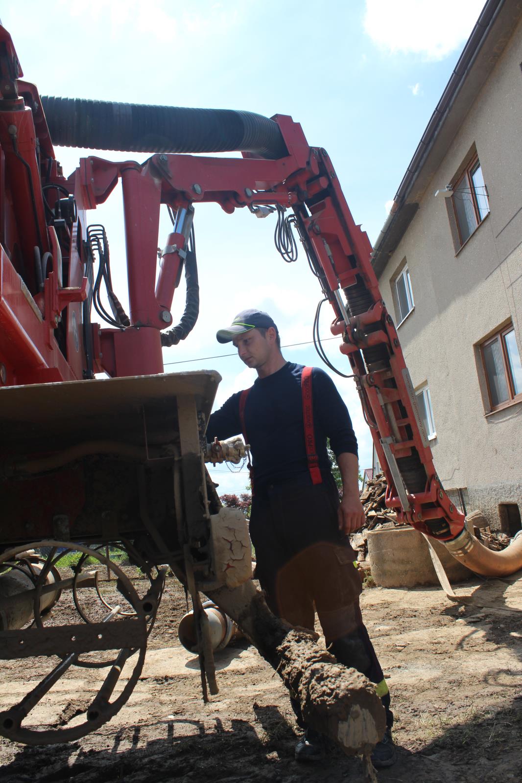 V Dlouhé Loučce jsme čerpali studny a garáže, odvážely se tuny poškozeného a zaplaveného materiálu.