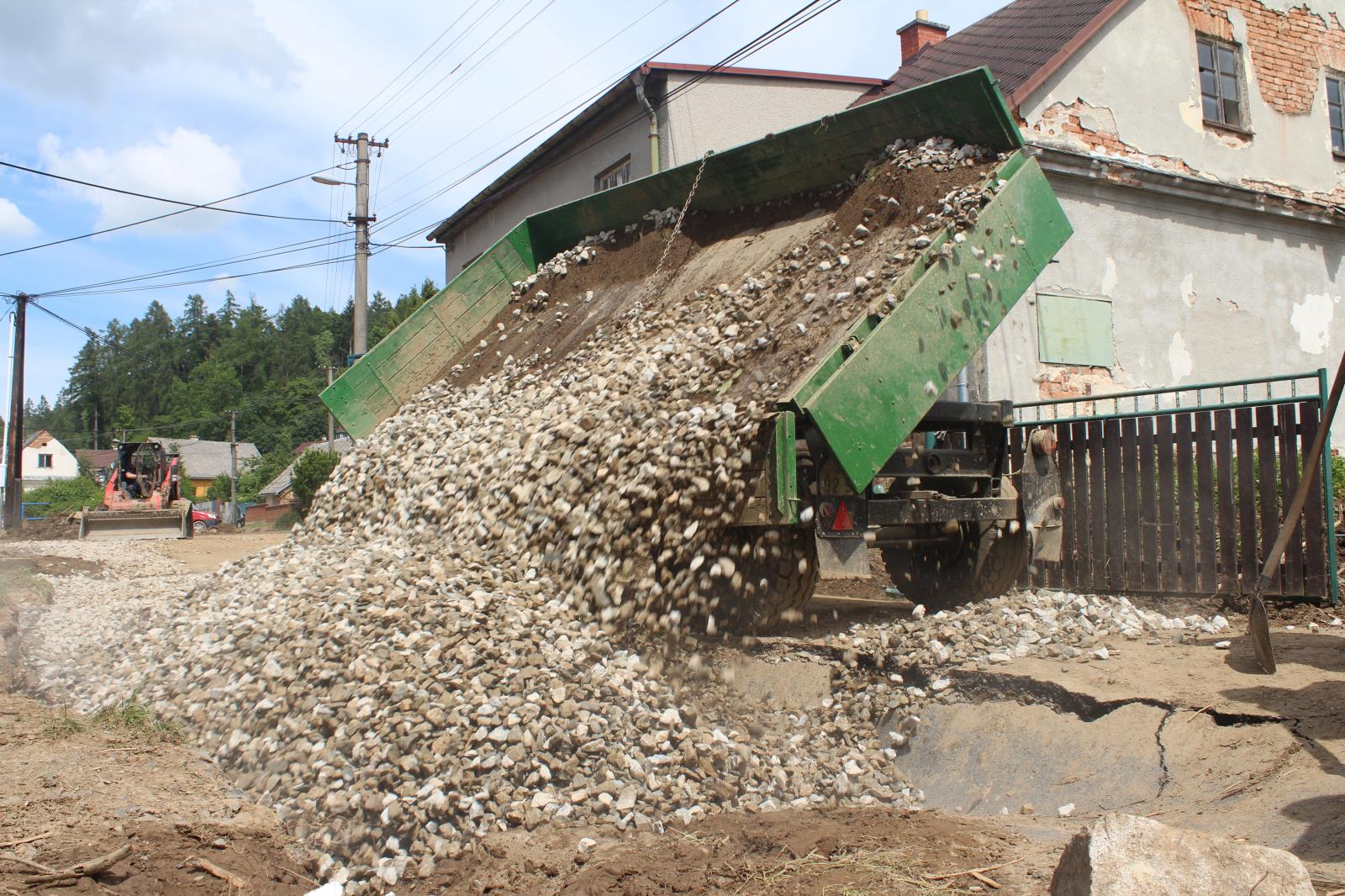 Likvidační práce v obcích postižených lokální povodní postupují velmi rychle. Dnes se odvážel naplavený materiál a bahno těžkou...