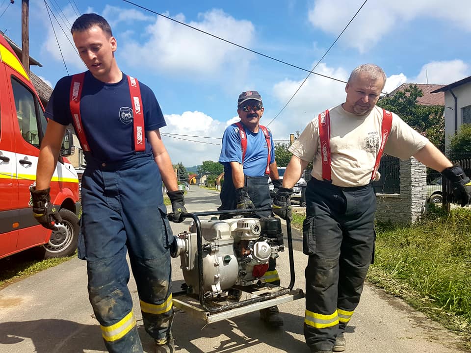 Ze zaplavených obcí hasiči odváží tuny poškozeného materiálu
