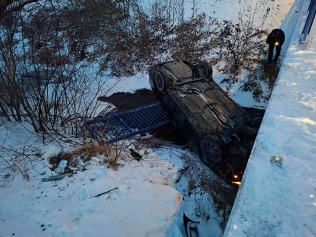 Další zásah následoval v oblasti plumlovské přehrady. Osobní automobil zde při odbočování na příjezdovou cestu sjel na zasněžené a namrzlé silnici mimo komunikaci. Vozidlo i s posádkou skončilo v jednom z přítoků a zůstalo zaklíněné ve svahu mezi stromy. Hrozilo jeho další zřícení. Hasiči proto nasadili technický automobil s výkonným navijákem. Nejprve zajistili stabilitu vozidla, odstranili okolní dřeviny a následně auto postupně vyprostili zpět na silnici. Událost se obešla bez zranění. Zásah provedla profesionální jednotka ze stanice Prostějov.