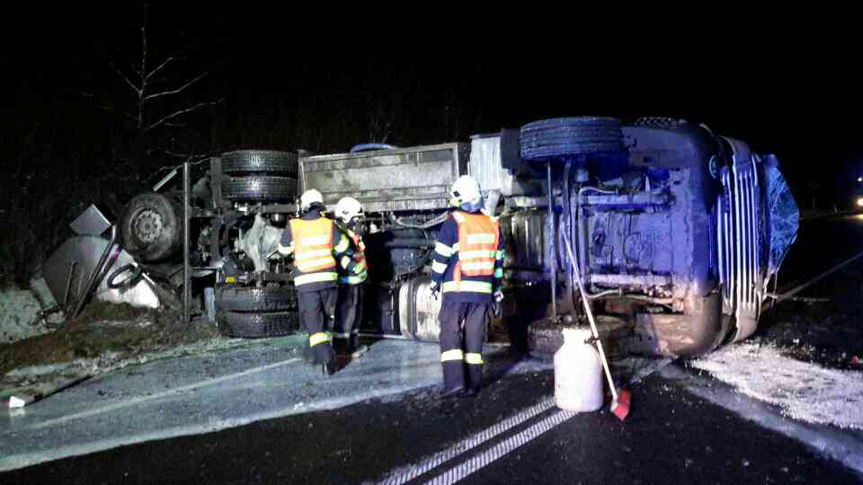 V pátek 4. ledna 2019 byla v 5:29 hodin oznámena na operační středisko HZS Olomouckého kraje dopravní nehoda kamionu, který převážel mléko na přivaděči na dálnici D 35 u obce Přáslavice (exit 281).  Na místo vyjeli profesionální hasiči z Olomouce a dobrovolní hasiči z Velké Bystřice, kteří po příjezdu zjistili, že se jedná o nehodu cisterny s návěsem, která převážela mléko. Cisterna sjela do příkopu a převážené mléko z ní částečně uniklo. Hasiči zajistili havarovanou cisternu proti vzniku požáru a zjišťovali, kolik mléka z cisterny a návěsu přesně uniklo. Podle dostupných informací by to mělo být asi 15 kubíků (polovina převáženého nákladu). Při nehodě byl zraněn řidič, kterého zdravotnická záchranná služba odvezla na ošetření do nemocnice. Po sedmé hodině ranní se obě jednotky hasičů vrátily zpět na své základny a čekalo se na příjezd pracovníků životního prostředí a majitele firmy, kteří rozhodli o dalším postupu. Těsně před devátou hodinou ranní byli hasiči z Olomouce povoláni zpět na místo události, protože bylo potřeba přečerpat uniklé mléko z jímek do připravených nádob. Přečerpání mléka, které neuniklo, si řešil majitel. Vyprošťování vozidla bude zajišťovat specializovaná firma. Silnice (dálniční přivaděč) je ve směru Ostrava - Olomouc uzavřen, v obráceném směru je průjezdný jeden jízdní pruh. Situaci stále sledujeme a budeme vás informovat. Zdroj: por. Bc. Ing. Vladimíra Hacsiková, tisková mluvčí - HZS Olomouckého kraje Foto: HZS Olomouckého kraje FOTOGALERIE