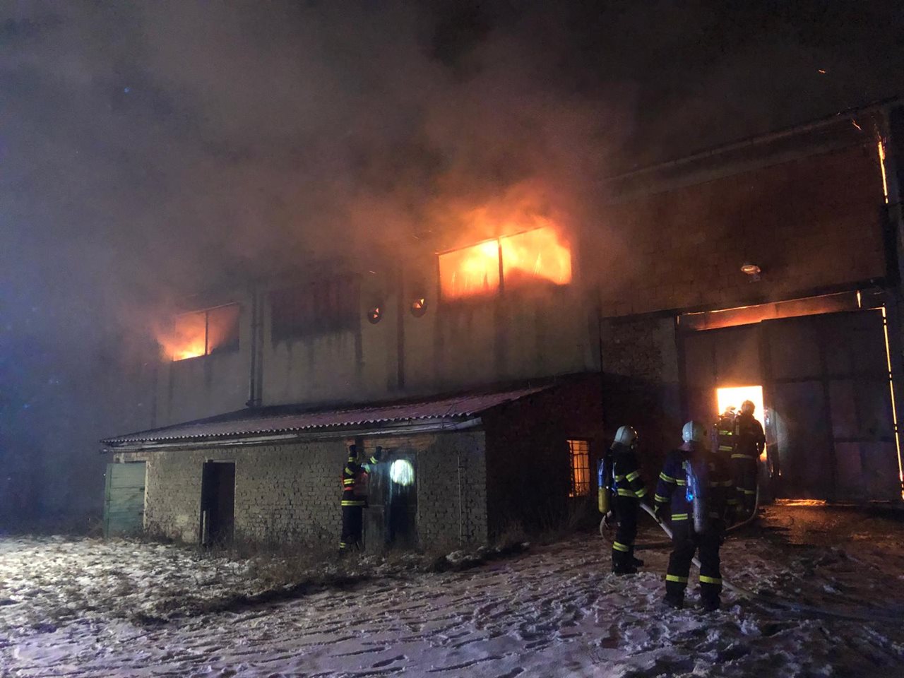 V pátek 4. ledna 2019 byl v 17:51 hodin oznámen na operační středisko HZS Olomouckého kraje požár objektu plného slámy v obci Štarnov na Šternbersku. Na místo vyjeli profesionální hasiči z Olomouce, Šternberka, Uničova a dobrovolní hasiči ze Štarnova, Bělkovic - Lašťan, Bohuňovic, Dolan, Liboše a Olomouce. Hasiči po příjezdu zjistili, že požárem je zasažena balíkovaná sláma uskladněná v obezděné hale a částečně v zastřešeném přístřešku o rozměrech asi 40 x 20 metrů. Hasičům se rychlým zásahem podařilo druhou polovinu haly před požárem uchránit. S plameny hasiči bojují několika proudy vody, na místě jim pomáhá těžká technika, která slámu vyváží na volné prostranství, kde se rozebírá a dohašuje. Vzhledem k tomu, že šlo o zásah s delším časovým horizontem, přijel na místo týlový kontejner. Na místě události byl také řídící důstojník HZS Olomouckého kraje, vyšetřovatel hasičů, informován byl starosta obce a zástupci majitele. Při požáru nebyl nikdo zraněn, prvotní odhady hovoří o škodě okolo jednoho milionu korun, příčina vzniku požáru zůstává v šetření. Po 20:00 hodině se řešila dálková doprava vody na požářiště, jeden hydrant ve Štarnově totiž nestačí, hasiči proto museli dovážet vodu z nedalekého Šternberka. Zdroj: por. Bc. Ing. Vladimíra Hacsiková, tisková mluvčí - HZS Olomouckého kraje Foto: HZS Olomouckého kraje FOTOGALERIE