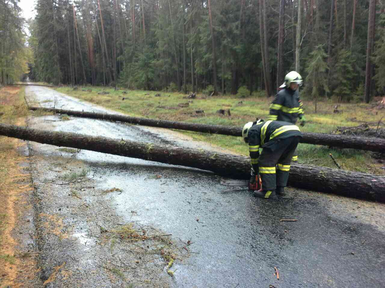 Motorové pily hasičů se od ranních hodin nezastavily. V terénu jsou desítky jednotek profesionálních i dobrovolných hasičů, které se nestačí vracet ani na stanice – přejíždějí od jednoho zásahu k dalším událostem.