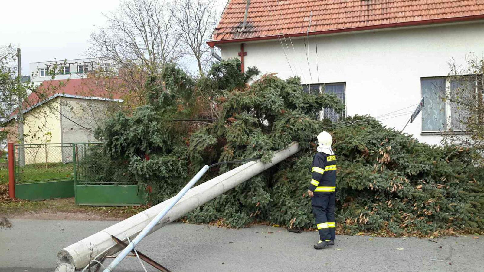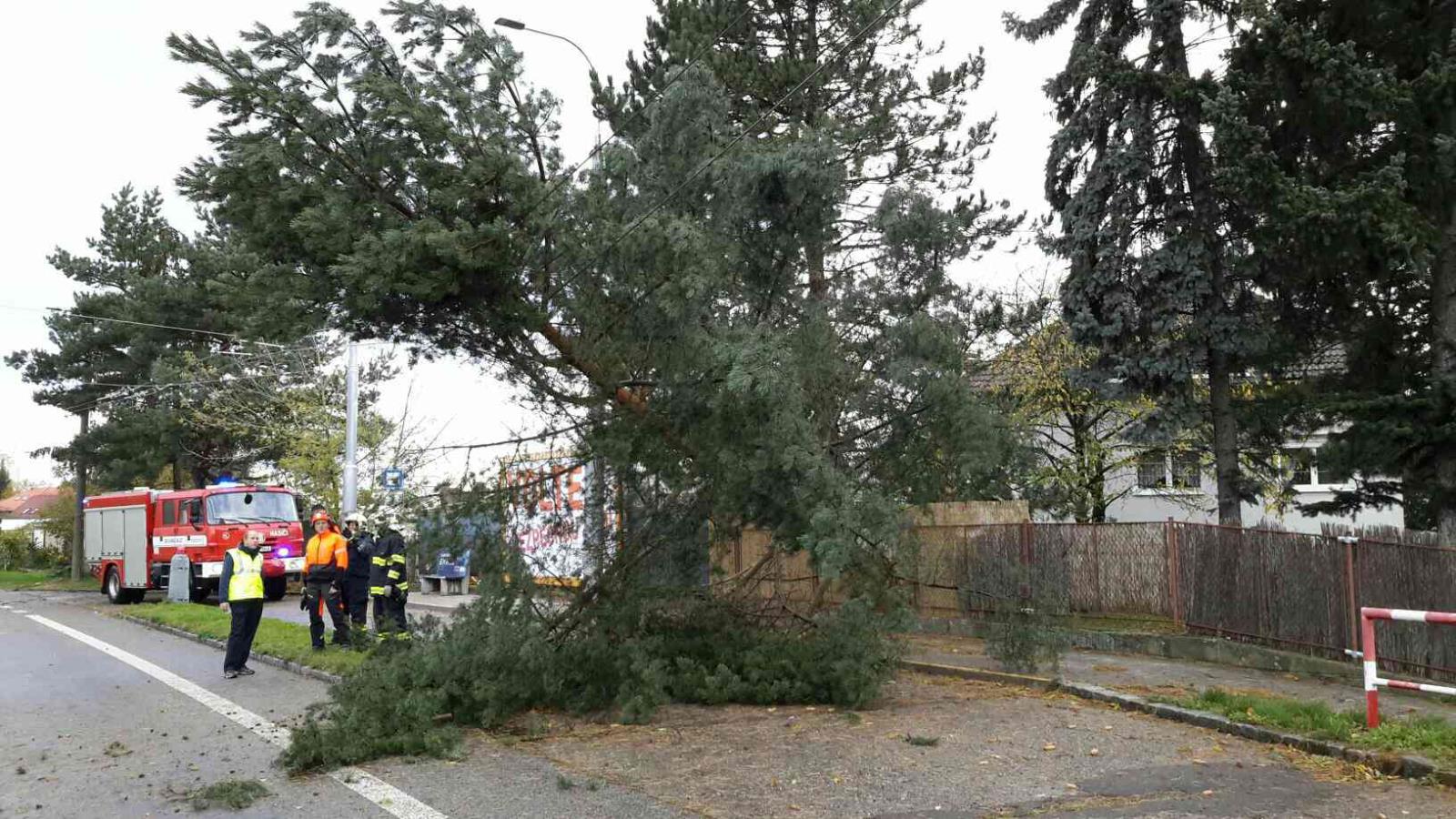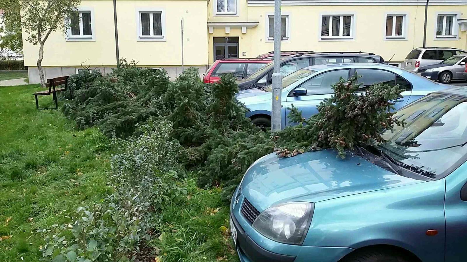 Vítr lámal větve stromů nebo vyvracel stromy s mělkými kořeny. Stromy padaly na komunikace, střechy objektů, ale i na dráty elektrického vedení.