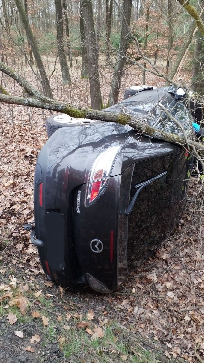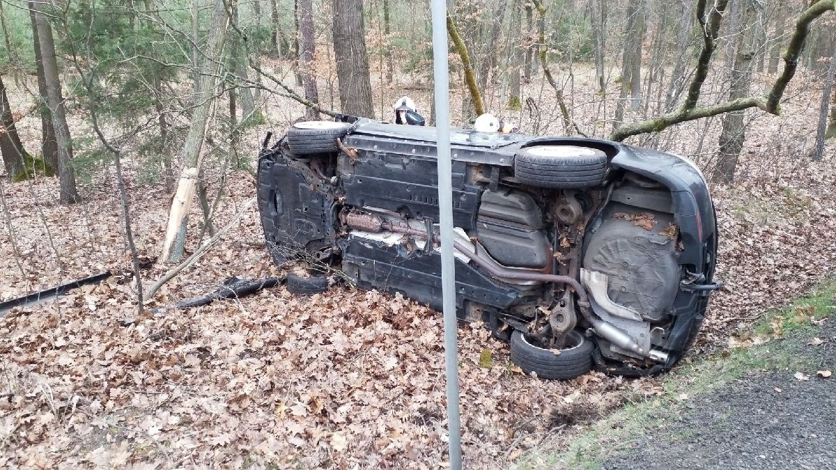 Automobil skončil na boku mimo komunikaci