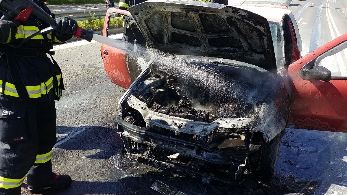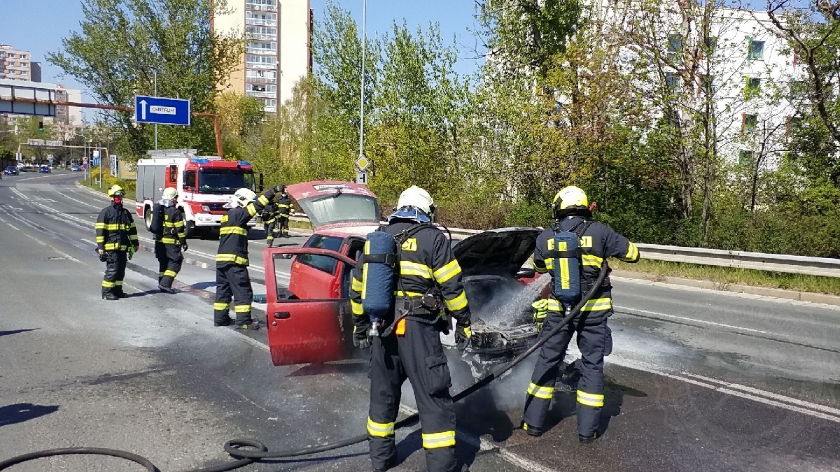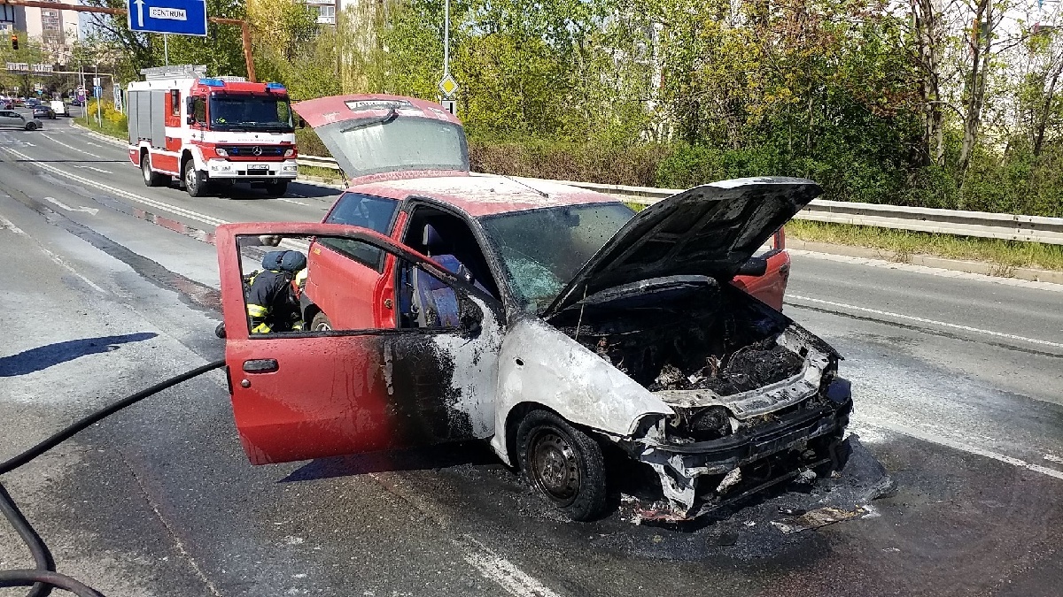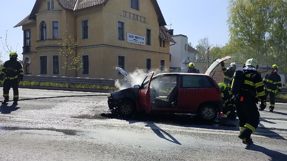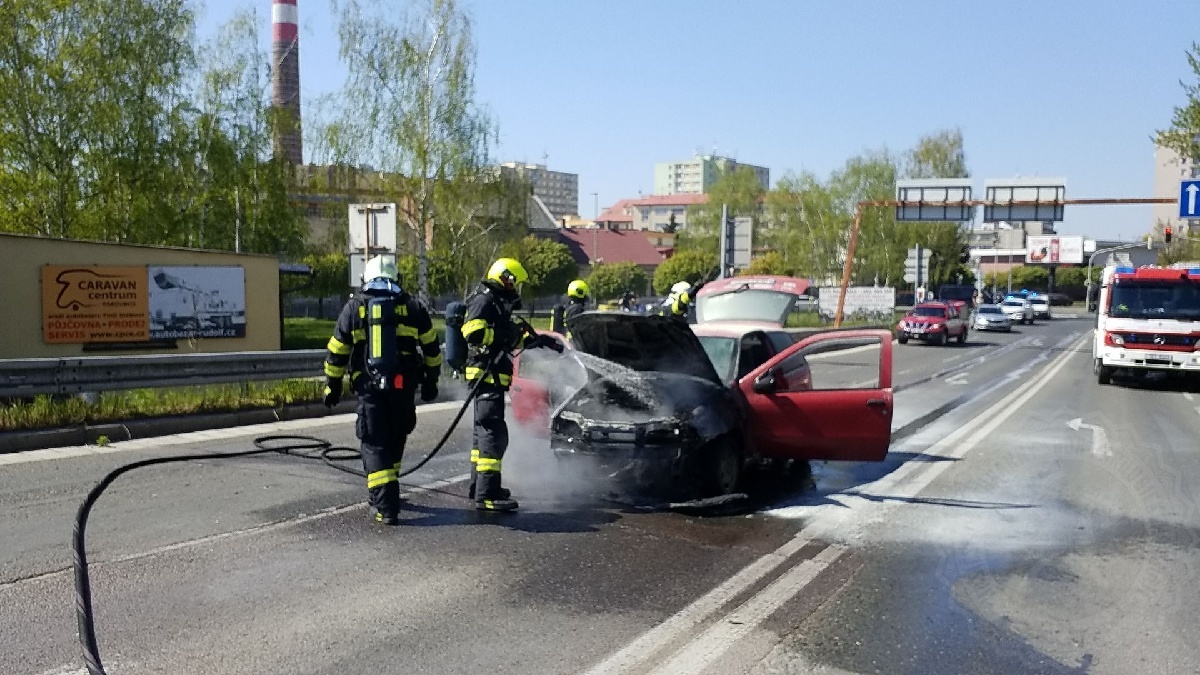 K požáru osobního vozidla Fiat Punto vyjížděli v úterý 21. dubna odpoledne profesionální hasiči do Pardubic k Anenskému podjezdu. Řidič s autem zastavil na semaforech a cítil benzín. Po chvíli už auto zachvátily plameny. Řidič stačil včas automobil opustit.