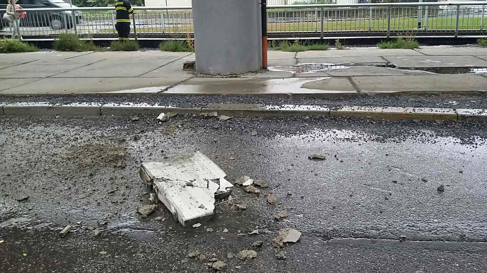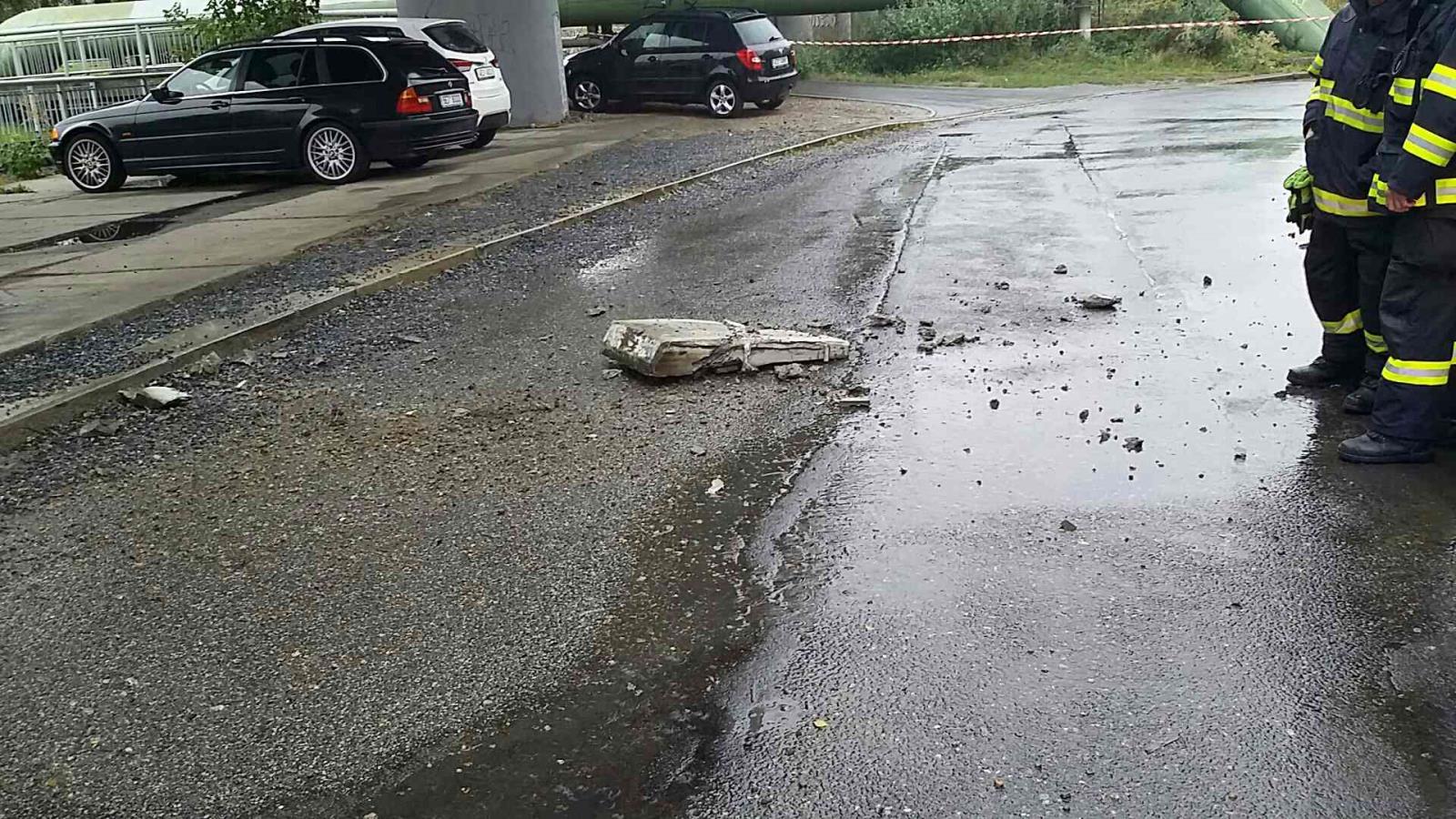 Část mostu spadla v Pardubicích na silnici, hasiči ihned zabezpečili místo