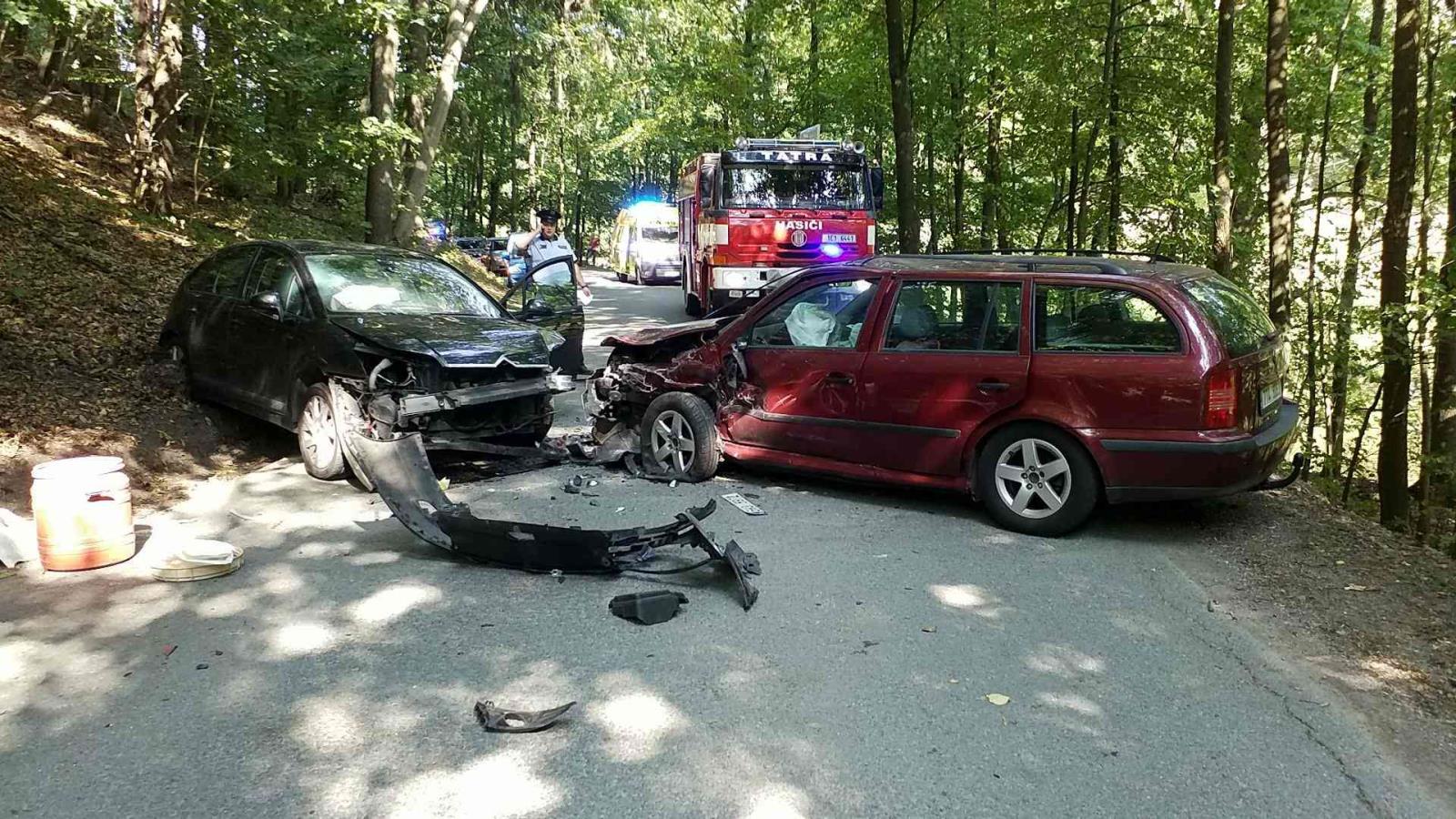 Čelní střet dvou osobních vozidel v Záchlumí na Orlickoústecku