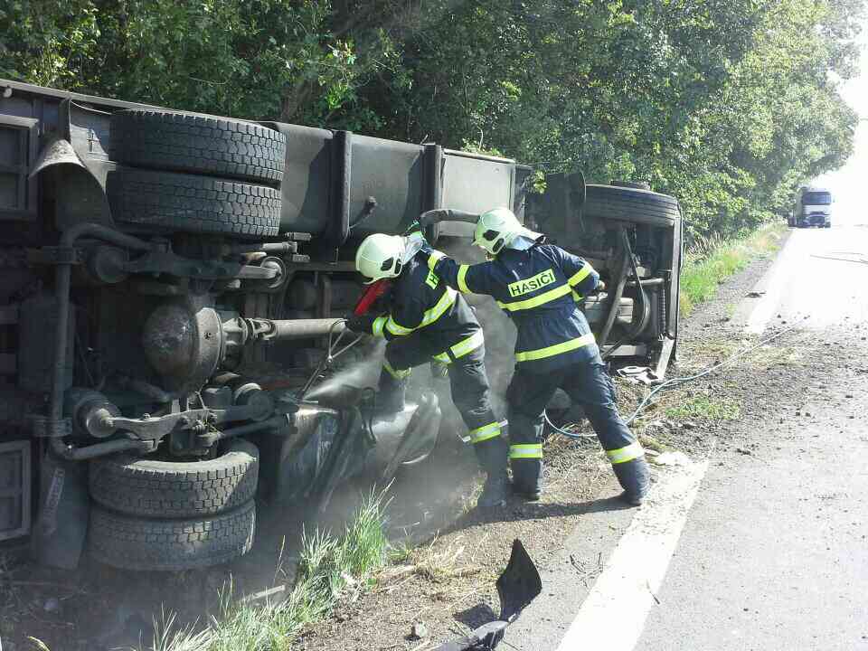 Z kamionu pro přepravu vozidel unikaly provozní náplně. Hasiči museli nejprve použít speciální zařízení cobra, kterým si do nádrže vytvořili otvor a postupně odčerpávali naftu. Uniklou naftu, která byla rozlitá na zhruba 80 m komunikace, hasiči posypali sorpčním materiálem.