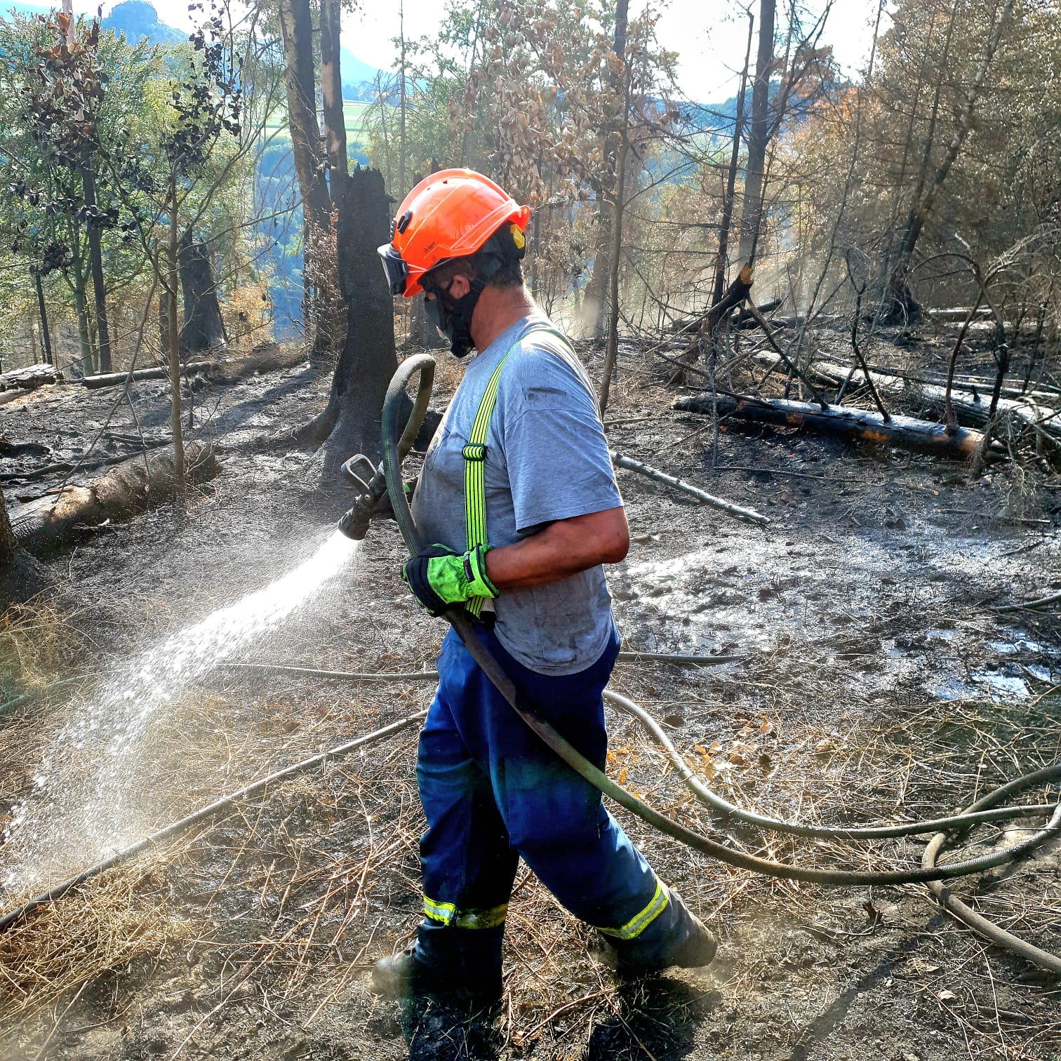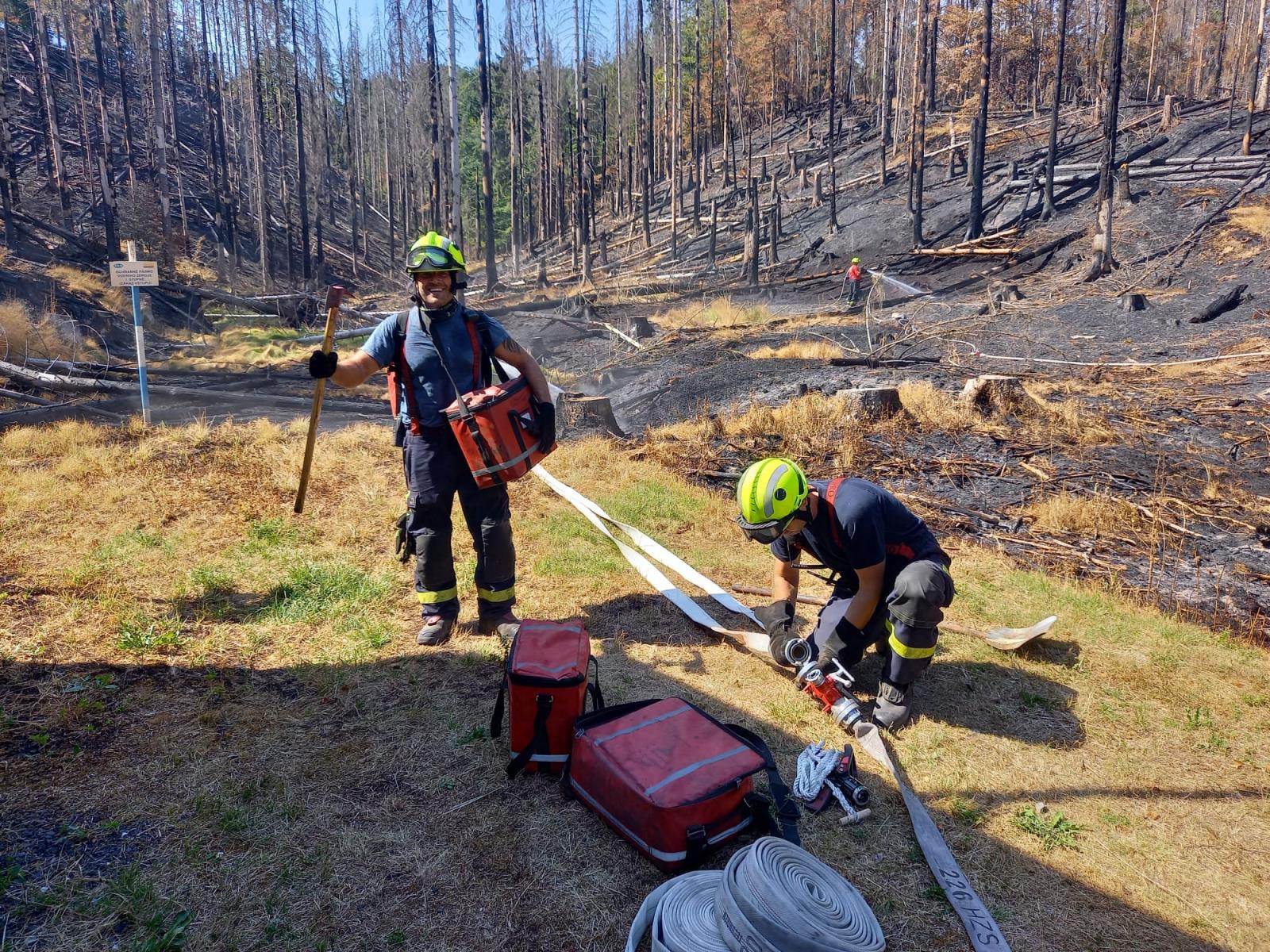 Hodně unavený, ale také spokojený odjíždí odřad, který v Národním parku České Švýcarsko odvedl opravdu velký kus práce. Týmu hasičů pod vedením velitele odřadu HZS Pardubického kraje ppor. Bc. Petra Dvořáka se podařilo uhasit sektor, který měli hasiči na starosti.