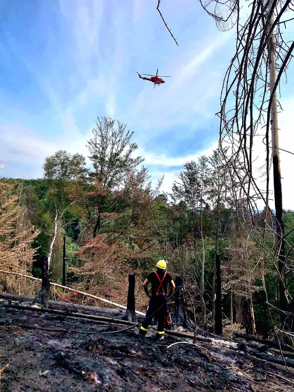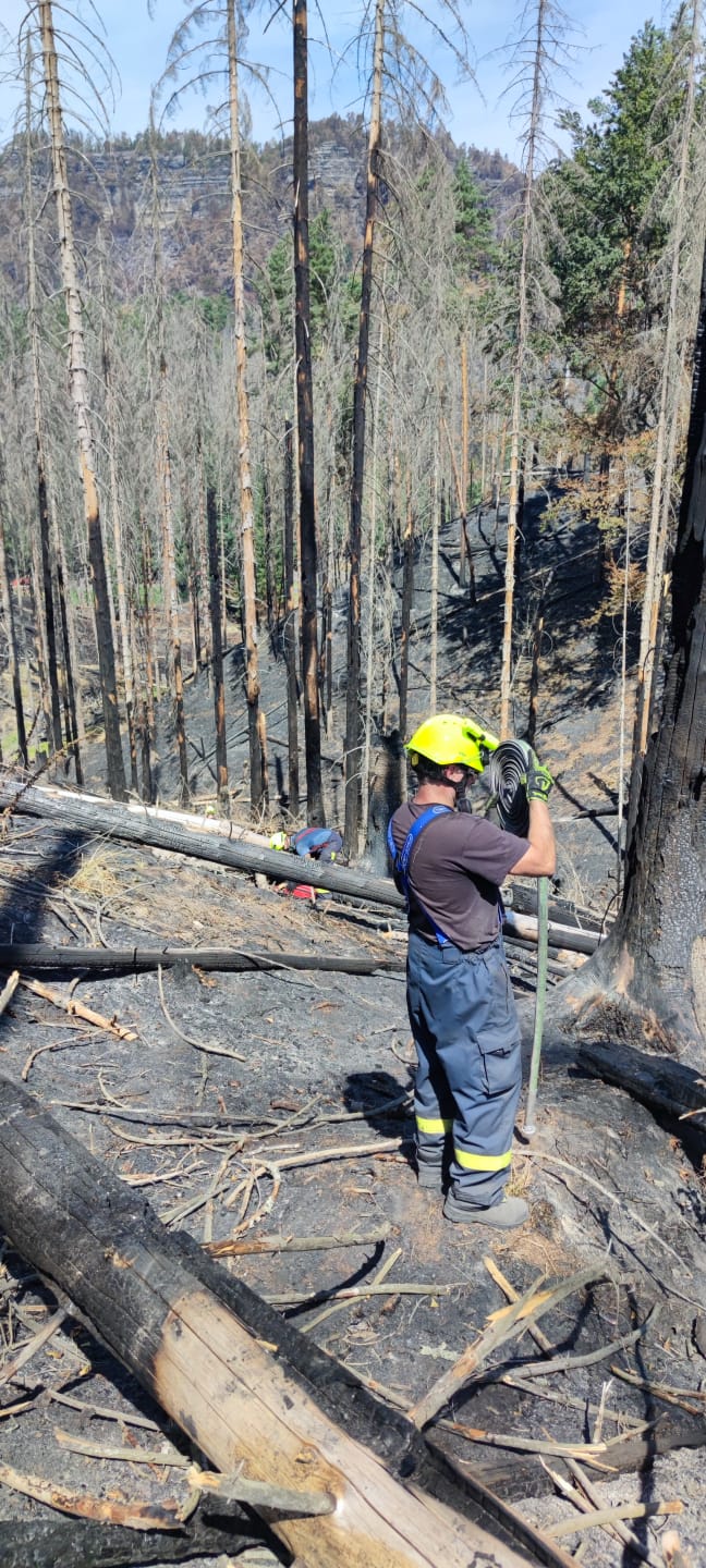 Proto se tým ještě během dnešního dne přesunul k Pravčické bráně, kde ještě není situace zcela pod kontrolou. Opět to byl velmi náročný den vzhledem k horkému počasí.