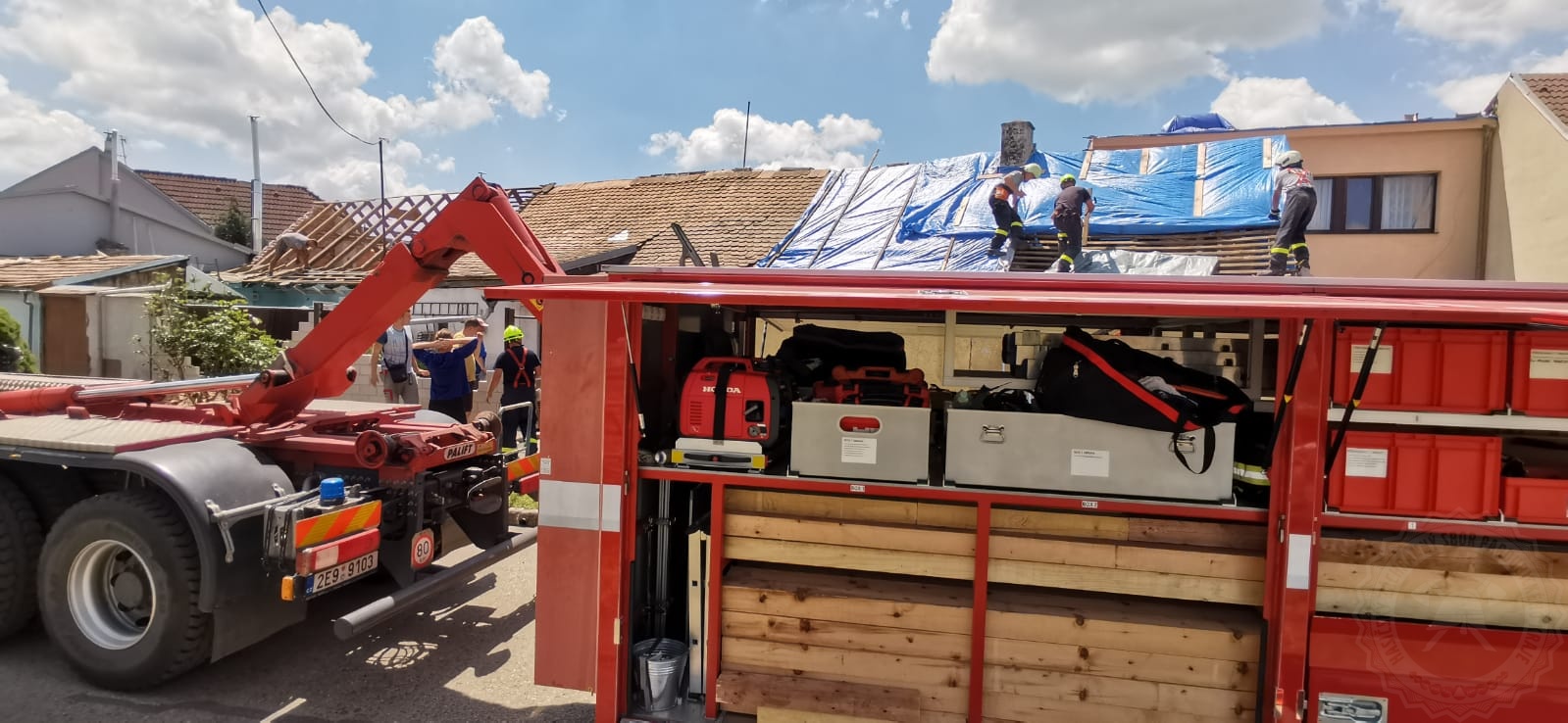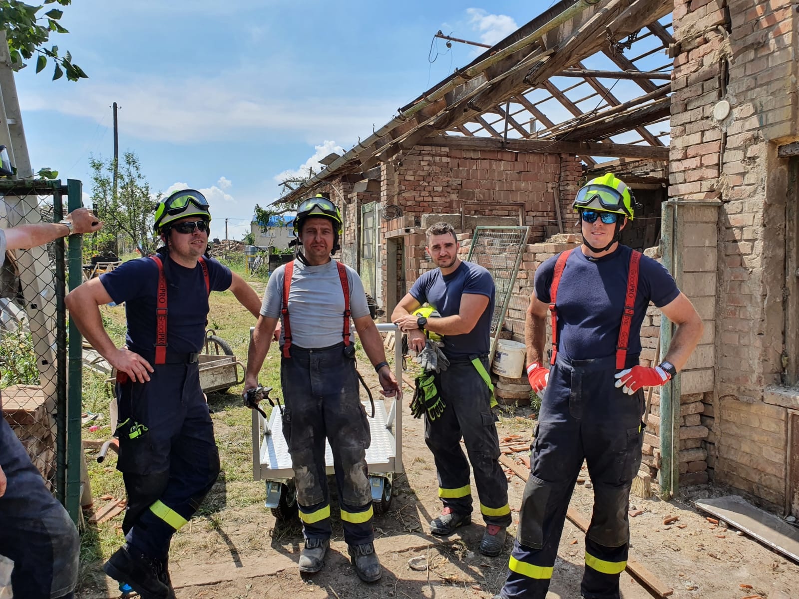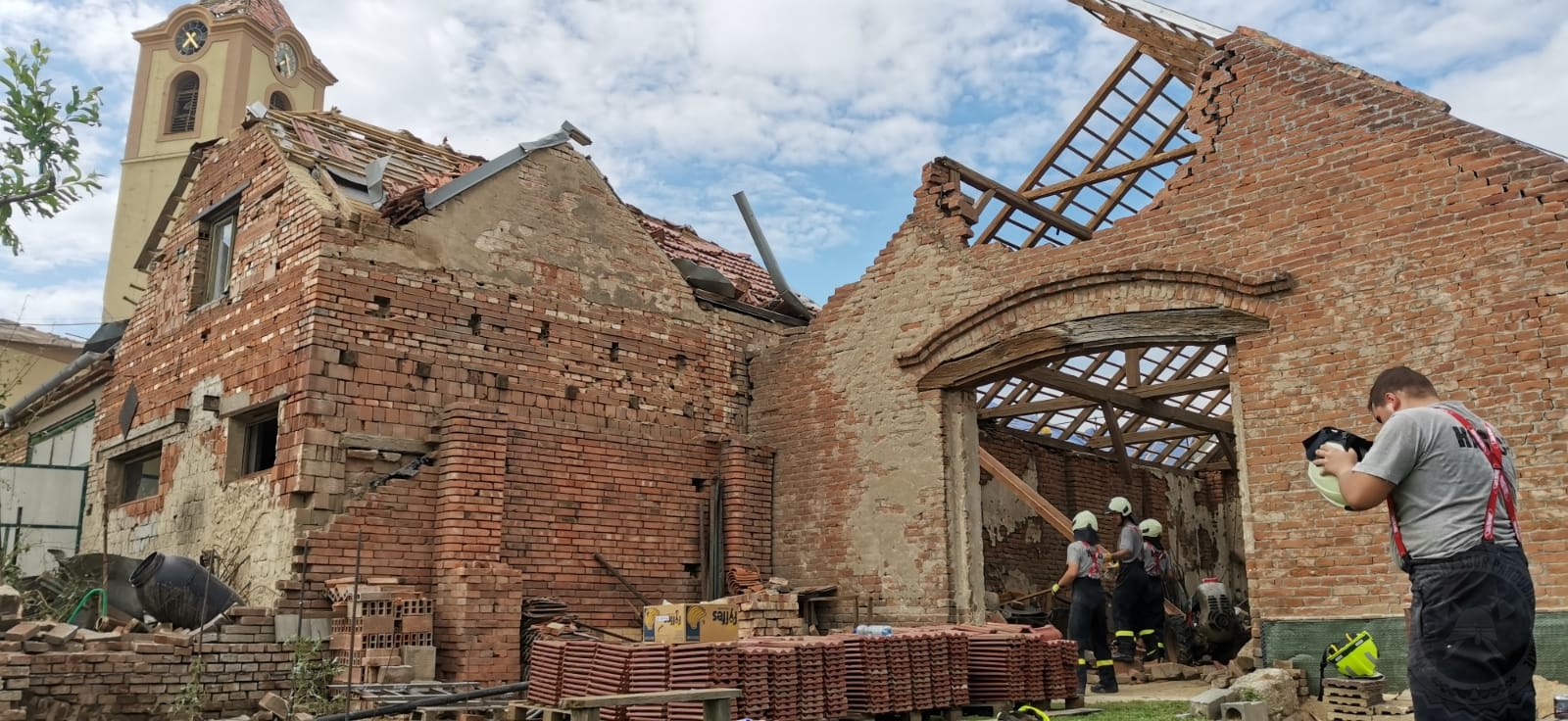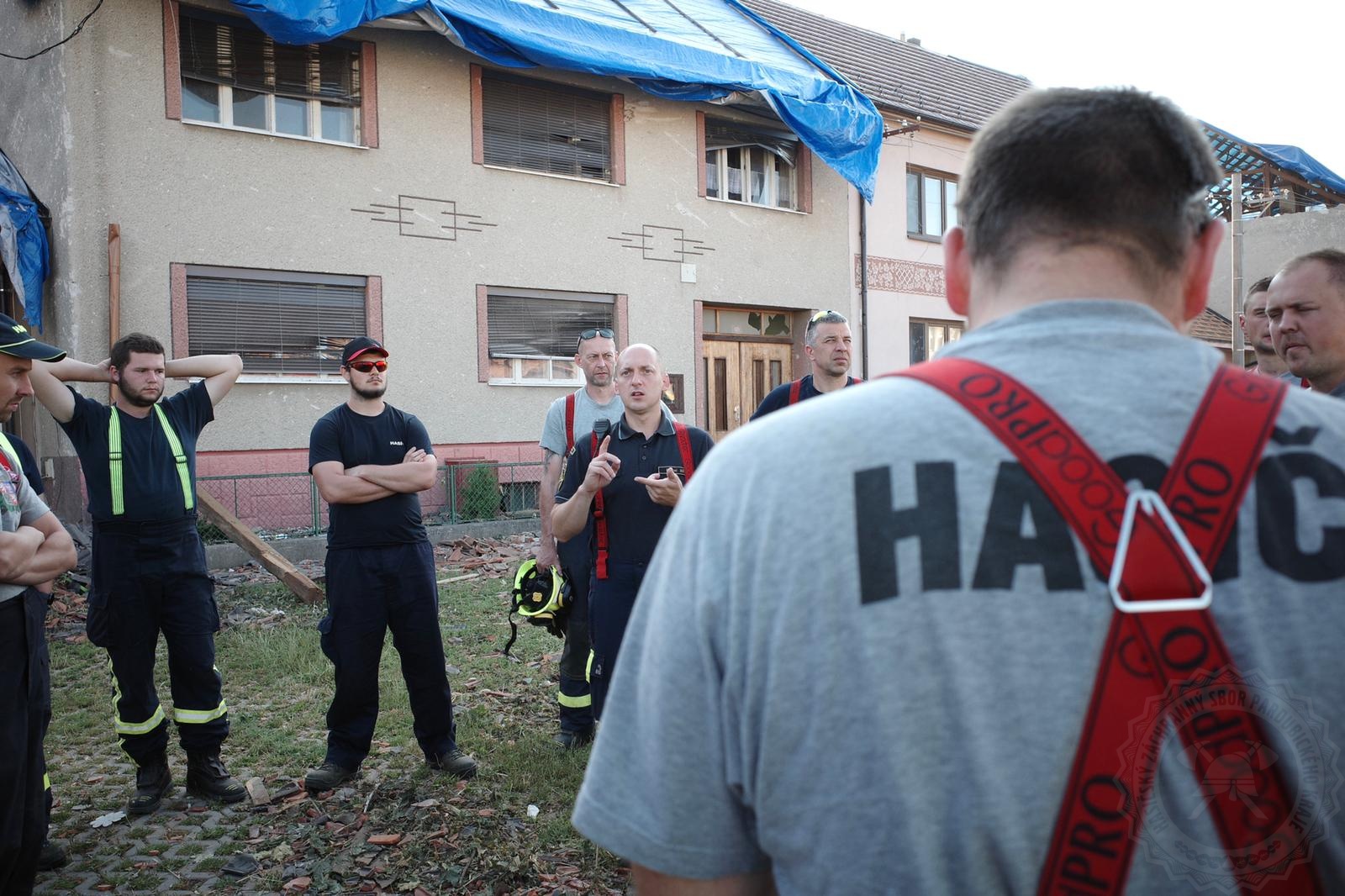 Profesionální hasiči zůstávají na místě. Hasiči jsou stále v zápřahu nedělní činnost spočívala opět v zaplachtování a zajištění střech, ale také čištění dřevin ze zcela poničeného hřbitova. Všichni, kteří zde pomáhají, čeká opravdu ještě hodně fyzicky náročných a zdlouhavých dní. Záchranné práce se pomalu mění na likvidační. A je to stále dokola – stabilizace budov, úklid sutin, opravy střech a další činnosti.