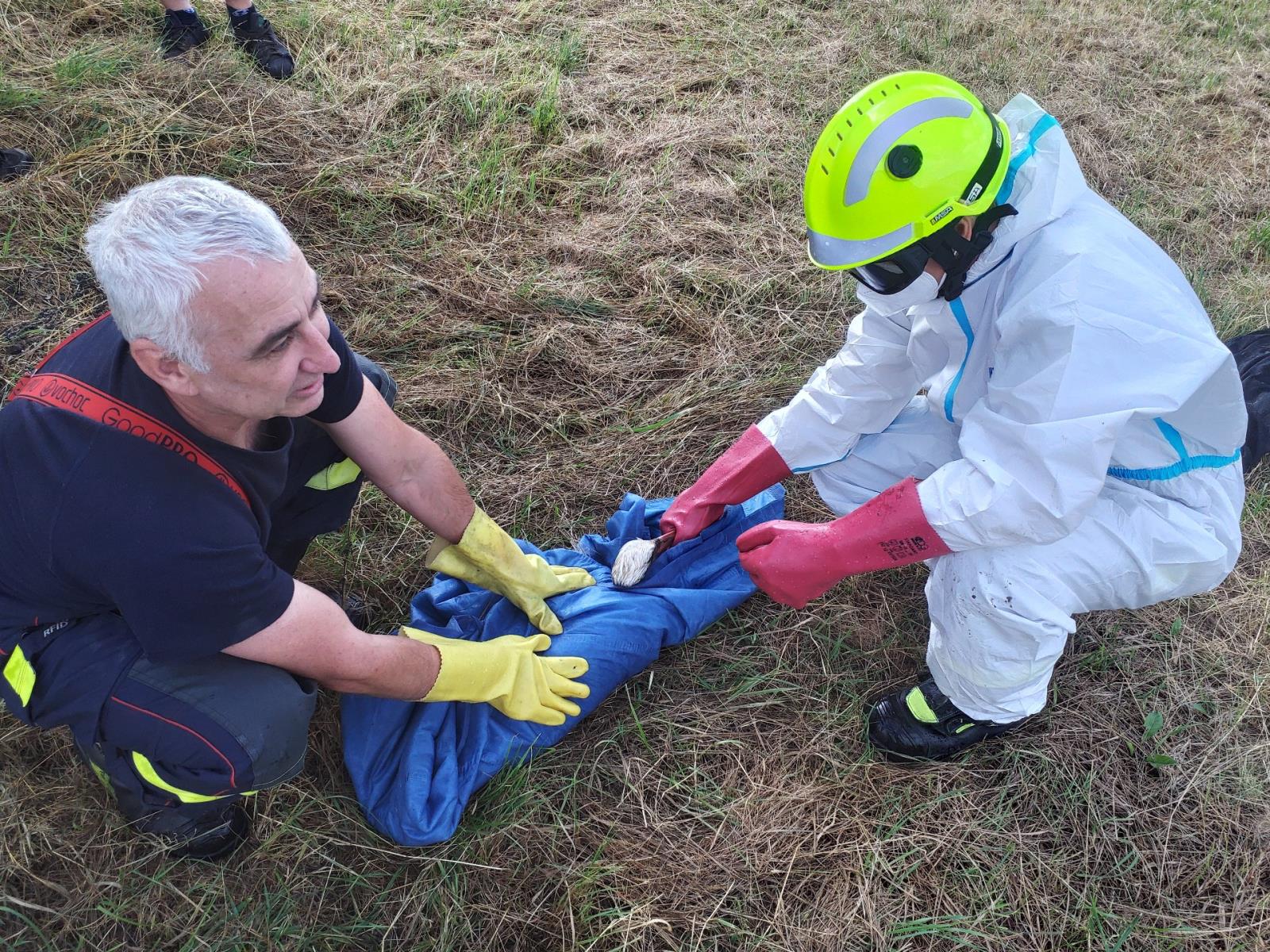 Dne 10.8. byl na tísňovou linku oznámen spadlý čáp na hladině bioplynové stanice v Sázavě. Na místo vyrazila profesionální jednotka z Lanškrouna, Ústí nad Orlicí a dobrovolná ze Žichlínku. Na místě průzkumem zjištěno, že čáp plave na hladině, ale nemůže se z ní zvednout k odletu. Pomocí výškové techniky a podběráku se podařilo čápa odchytit a dobrovolná jednotka ho převezla do záchranné stanice ve Vendolí.