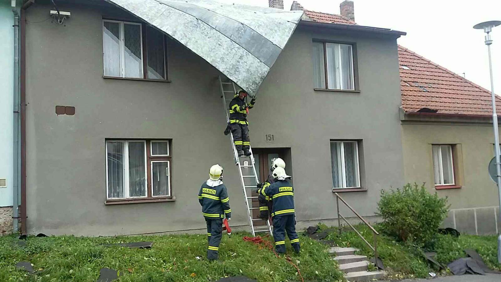 Hasiči museli zabezpečit poškozenou střechu v Žamberku v Severní ulici,