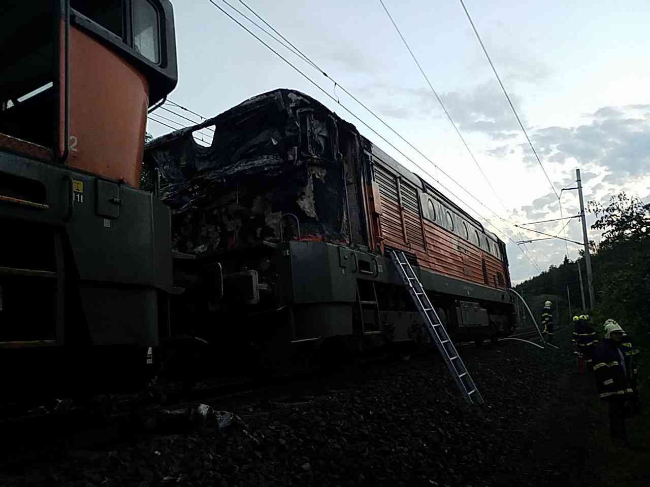 Hasiči likvidovali požár lokomotivy