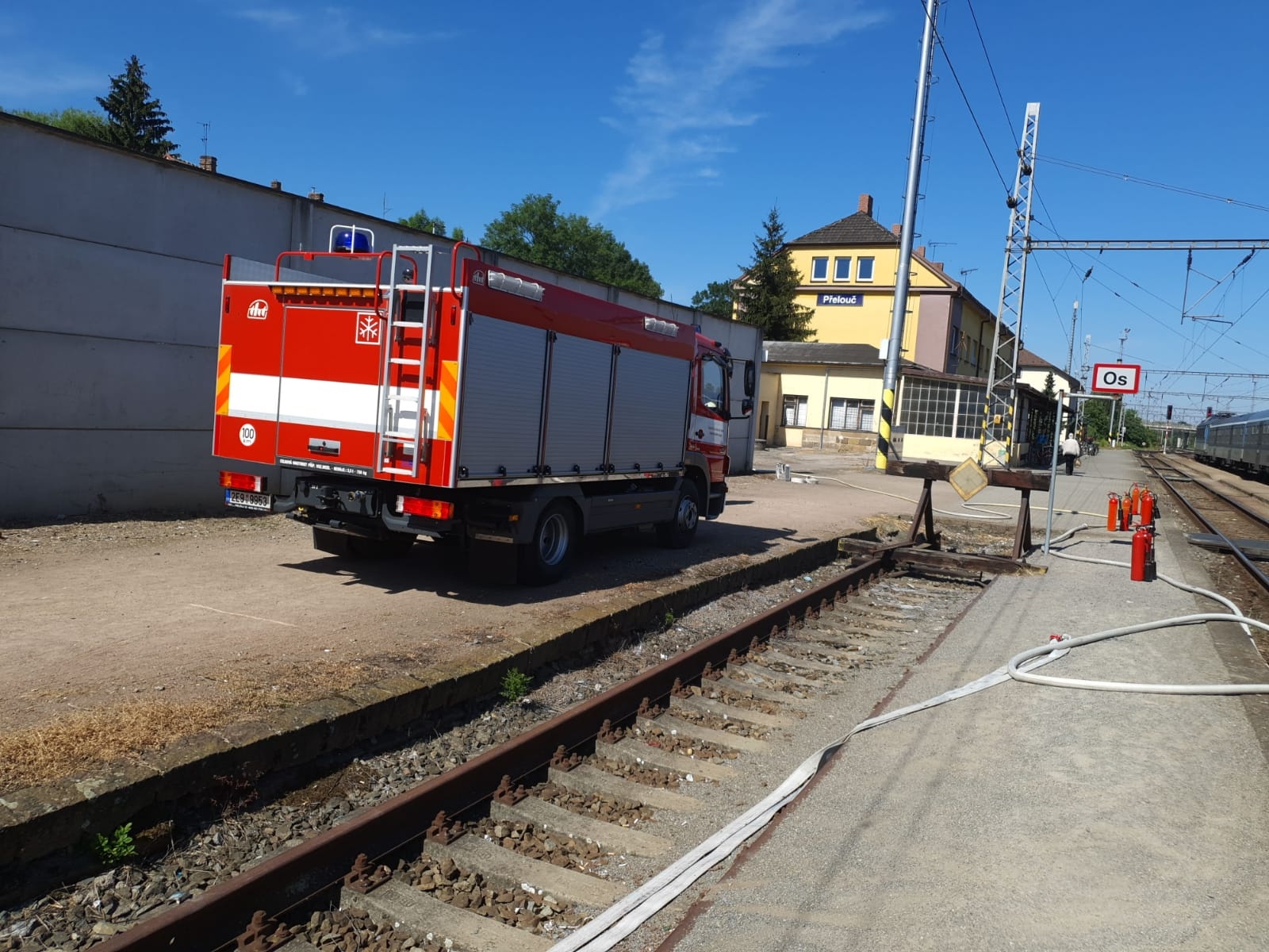 Čtyři jednotky hasičů likvidovaly ve čtvrtek 30. července v 10.16 hodin požár lokomotivy v Přelouči. Hasiči se rozdělili na skupiny tak, aby jedna část provedla evakuaci cestujících a druhá část hasičů prováděla likvidaci požáru. Velitel zásahu požádal o zastavení provozu na trati a vypnutí vedení. Celkem bylo evakuováno 40 osob. Před příjezdem hasičů začal požár likvidovat zaměstnanec drah pomocí ručního hasicího přístroje. Na místo se dostavili i hasiči SŽ Nymburk, kterým byla celá událost předána.