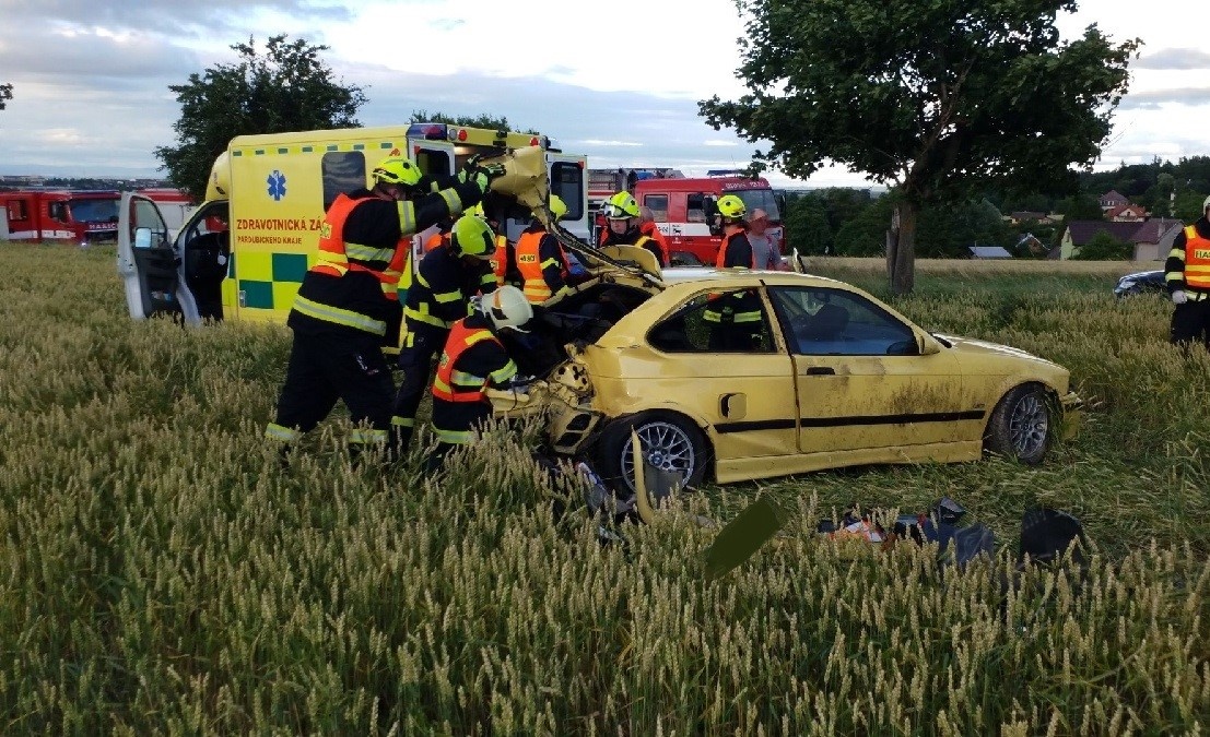 Řidiče z osobního vozidla, který byl mimo komunikaci, hasiči nejdříve vyprostili a následně předali do péče zdravotníků.