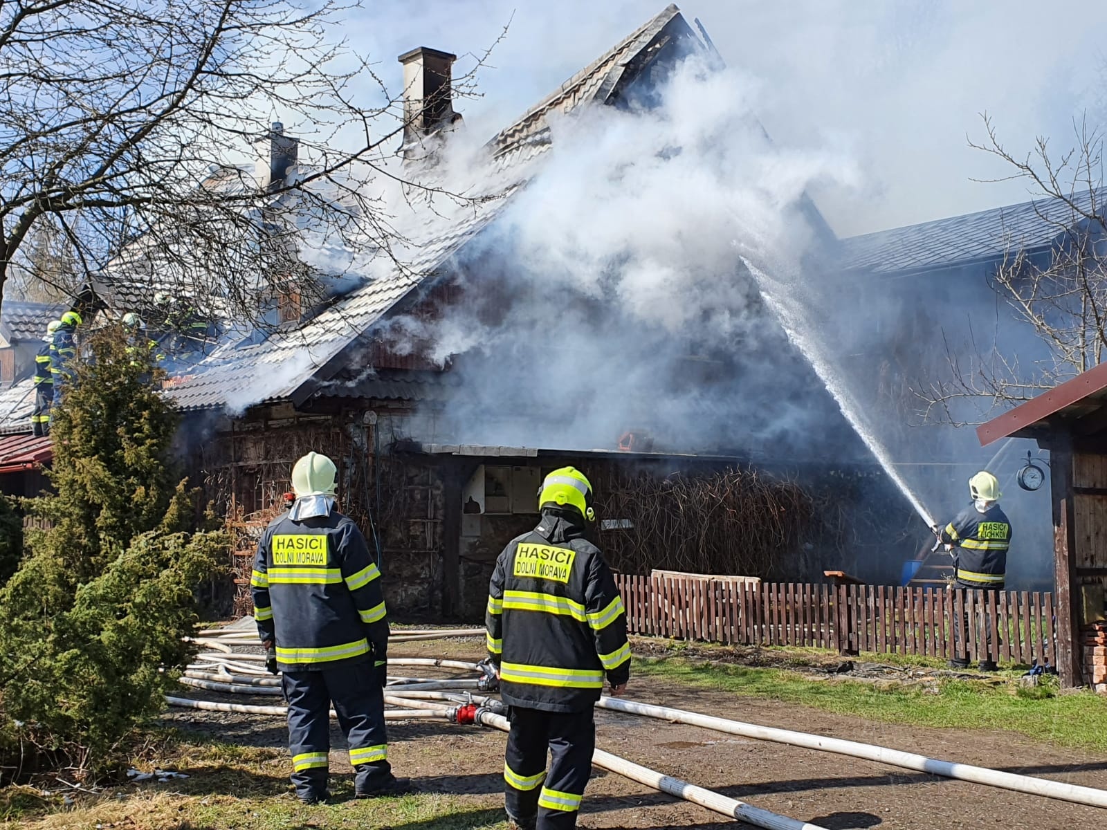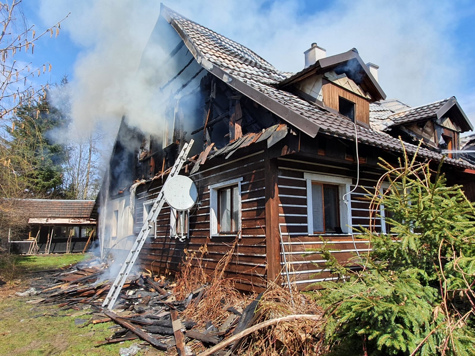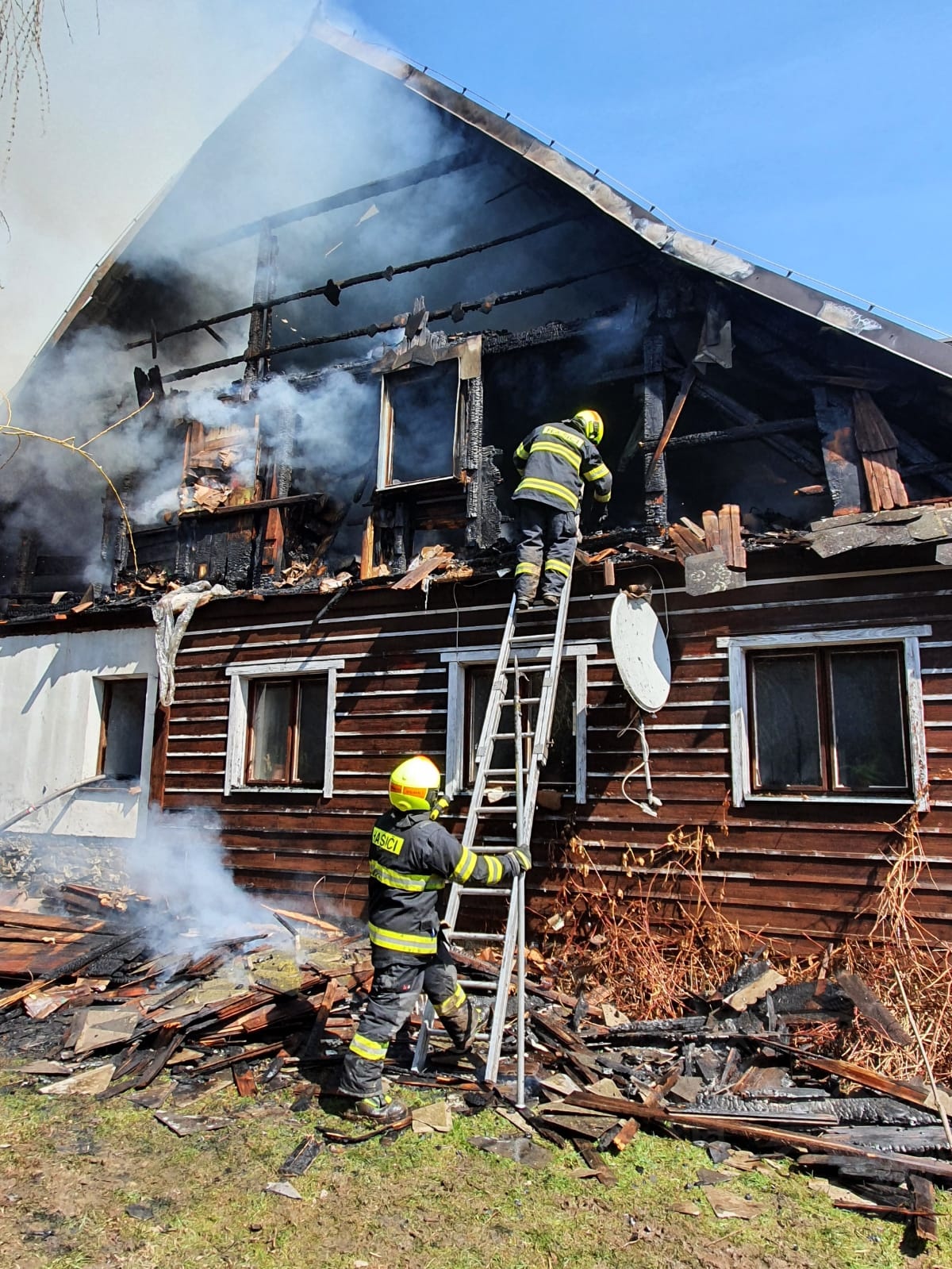 Zásah je velmi náročný a stále trvá. Všech 35 hasičů totiž muselo nutně rozebrat celé dřevěné obložení domu, střešní plechovou konstrukci i konstrukci uvnitř domu, aby byla odhalena všechna ohniska požáru a objekt znovu nezačal hořet. Příčina vzniku požáru je dle slov vyšetřovatele hasičů zjišťována a pracovat na jejím odhalení se bude i po celou sobotu.