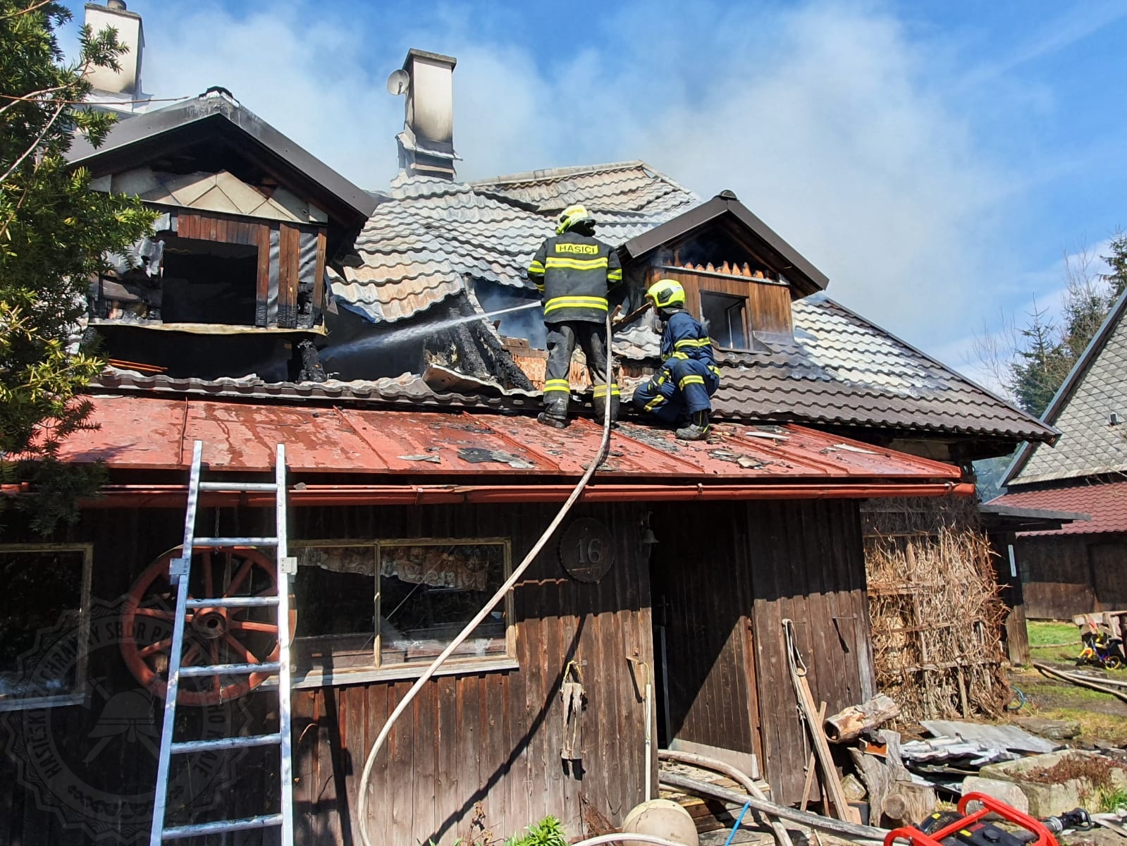 Povolán byl protichemický automobil se zásobou tlakových lahví pro výměnu dýchací techniky a další možný zásah hasičů. V podkroví, které bylo zasaženo plameny, se nacházely dvě bytové jednotky. Problémem pro hasiče při zásahu se ukázal podmáčený povrch v horské oblasti, kde se nachází ještě velké zbytky sněhu, a ztížen byl tak pohyb hasičské techniky u hořícího domu.