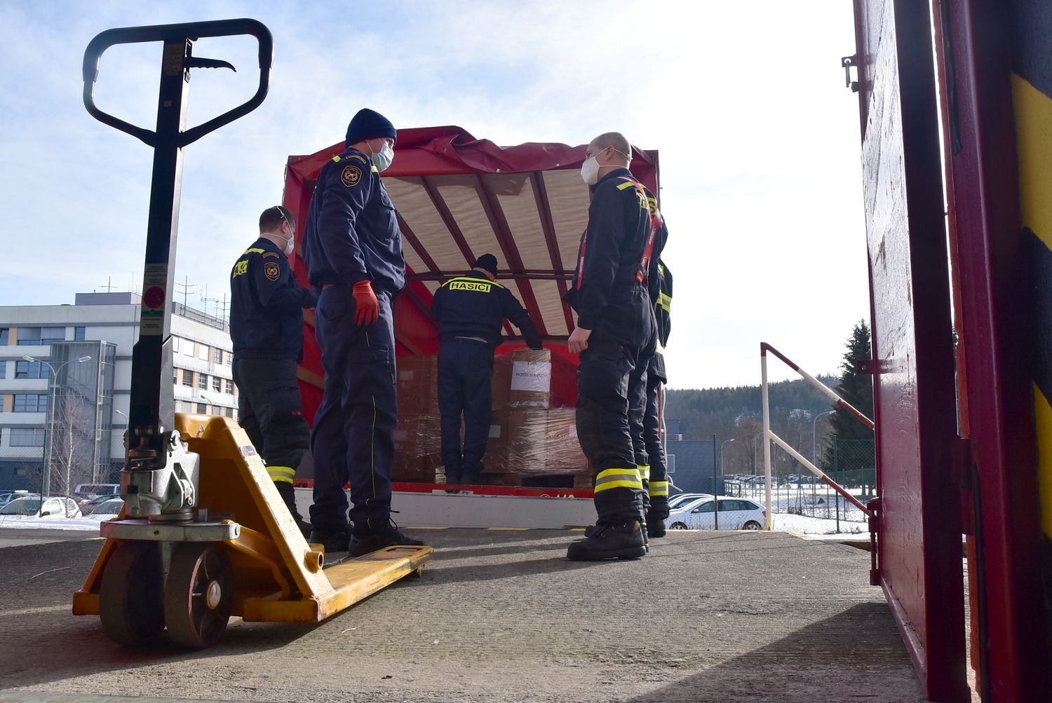 Speciální kapitolou činností v rámci řešení epidemie koronaviru byla naše pomoc Záchrannému útvaru Hlučín v „Národním skladu“ osobních ochranných pomůcek v Opočínku. Jistě si dobře pamatujete na třídění a překládání nákladu z letadel z Číny. Naši příslušníci se podíleli, jak na příjmu a třídění materiálu přímo ve skladu, tak na jeho další distribuci do „krajských skladů“ po celé České republice. Vozidla HZS Pardubického kraje v rámci této distribuce najela více než 26 700 km.