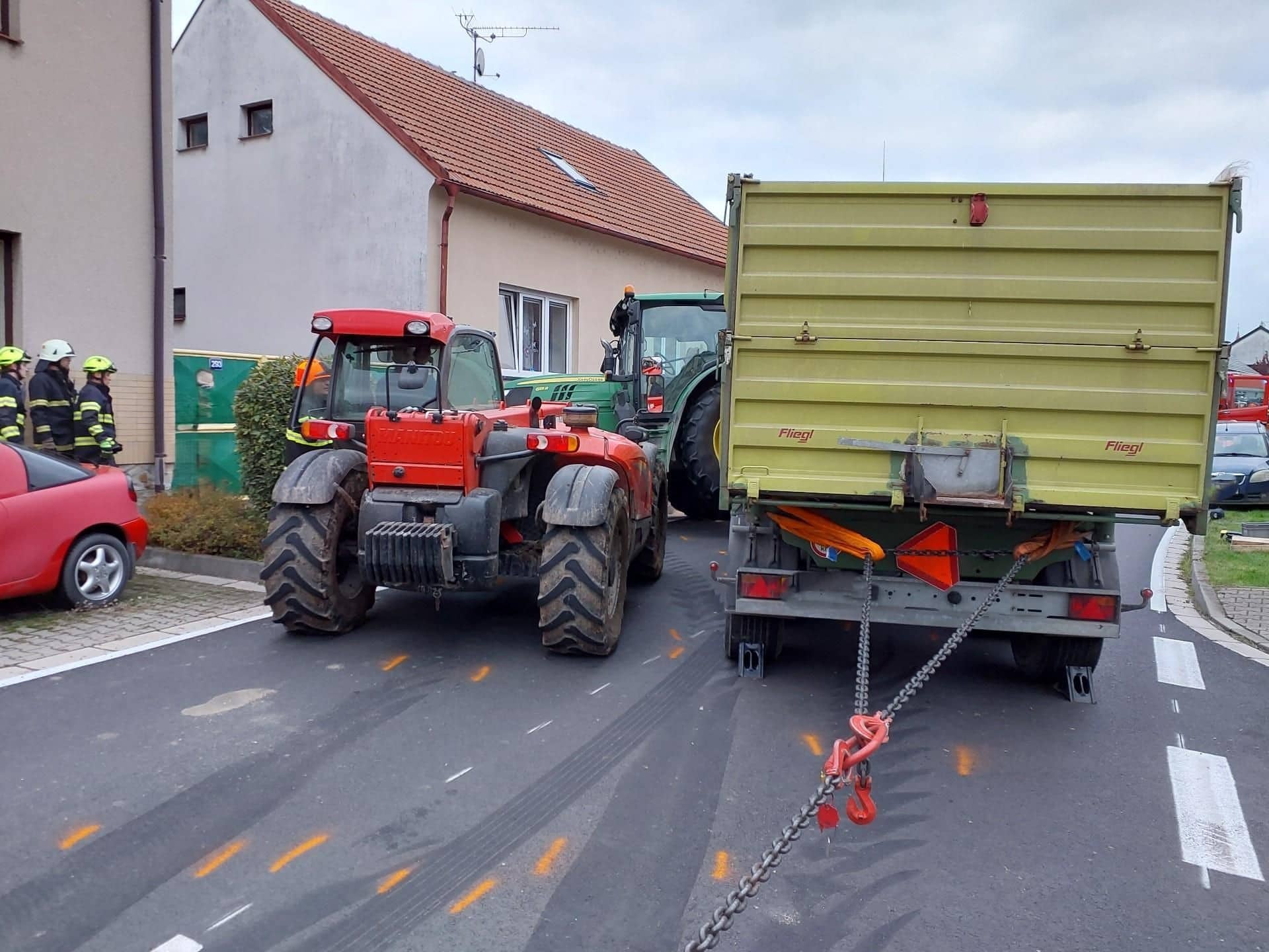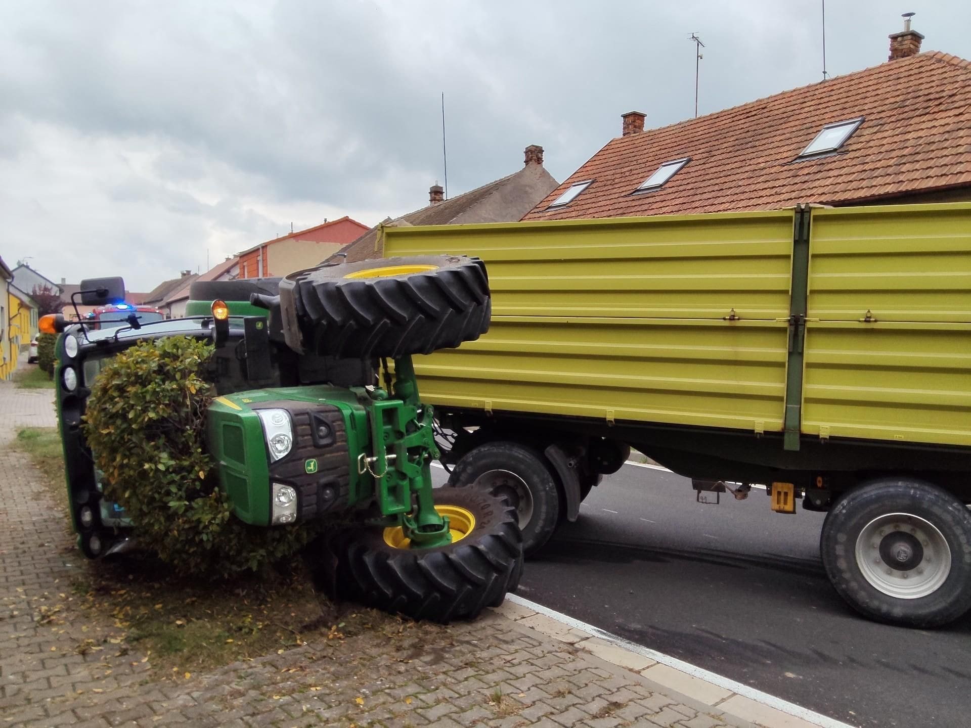 Hasiči v akci: Traktor se převrátil a zastavil provoz