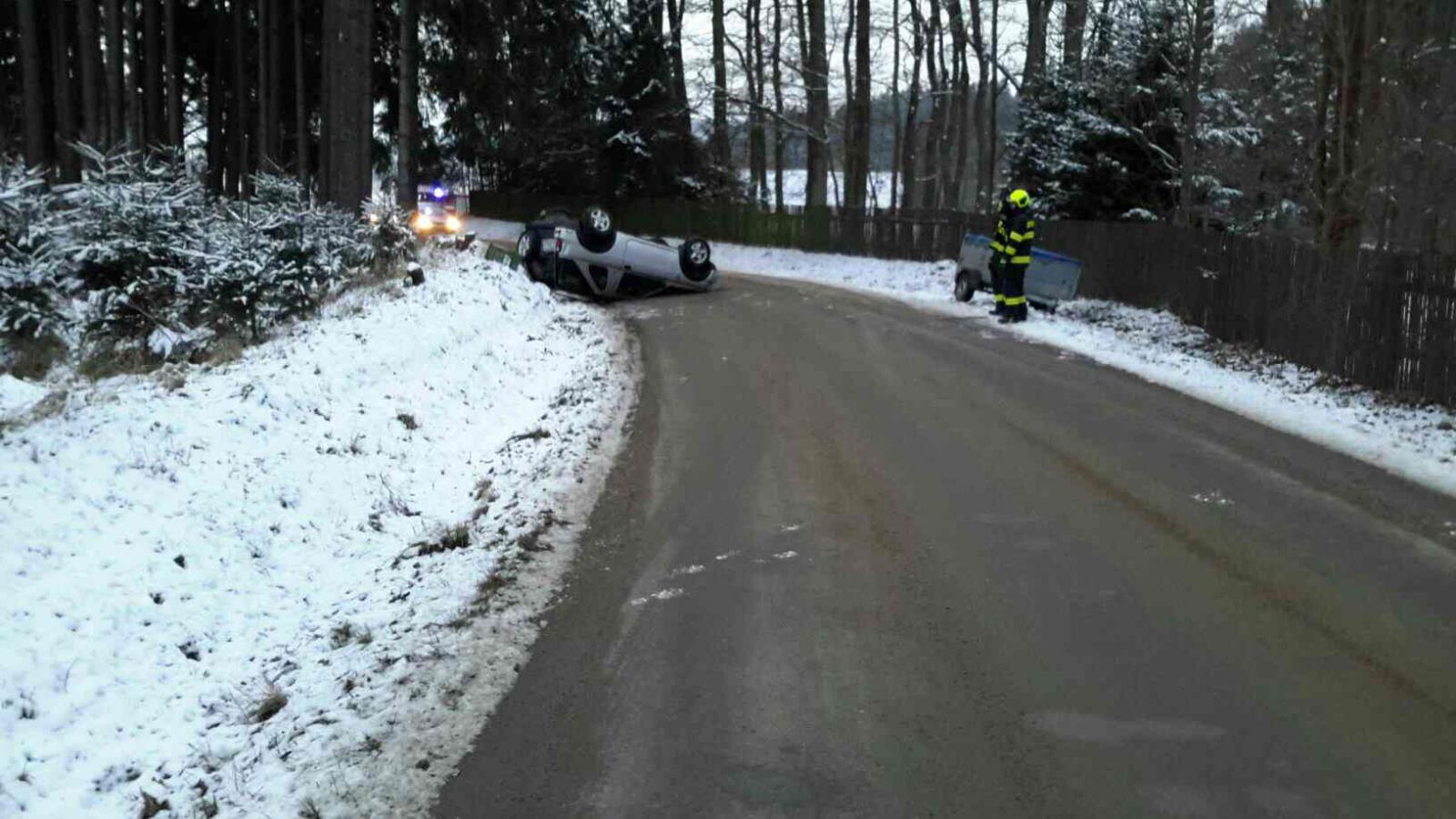 K nehodě osobního vozidla, které skončilo na střeše, vyjížděli v neděli 11. února v 16.20 hodin profesionální hasiči z Moravské Třebové a dobrovolní hasiči z Jevíčka.