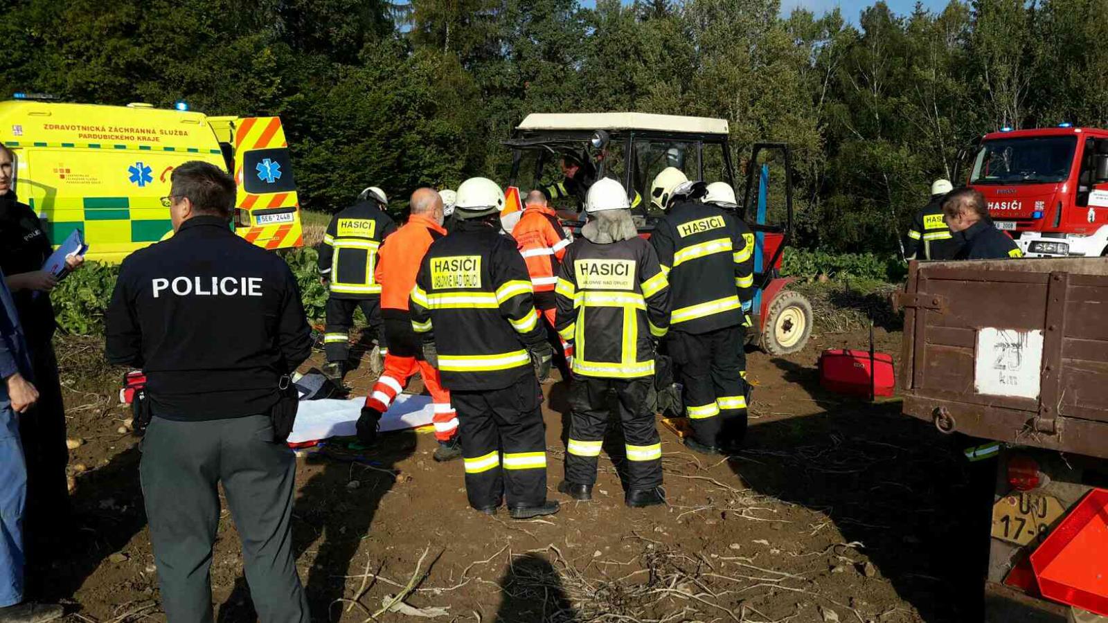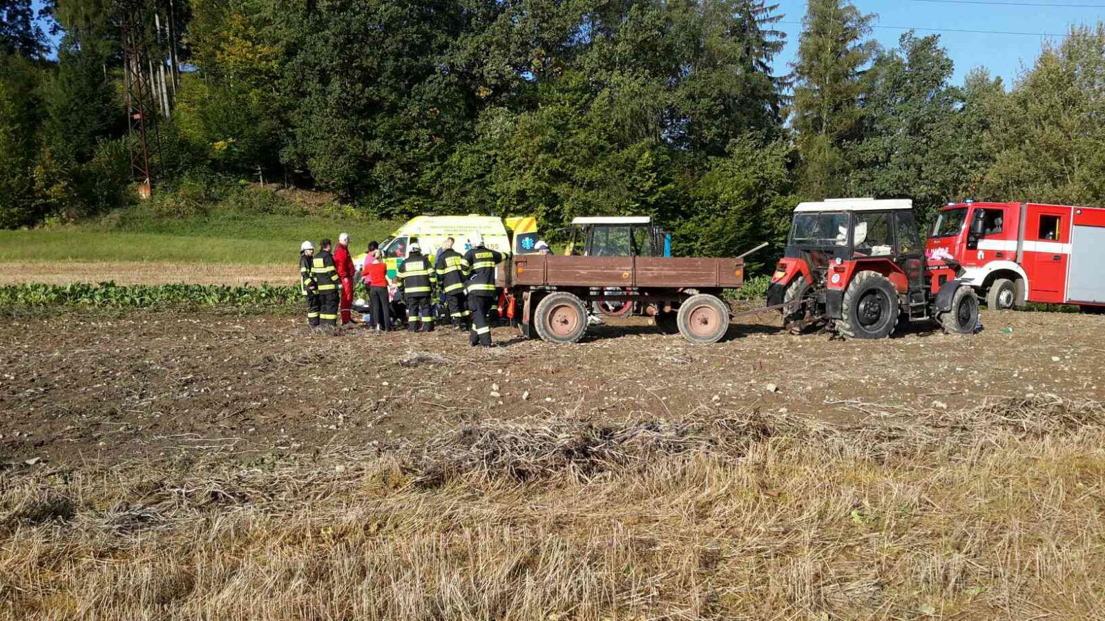 Hasiči vyprošťovali nohu chlapce který při úrazu přišel o část nohy, která se mu zamotala do hřídele traktoru
