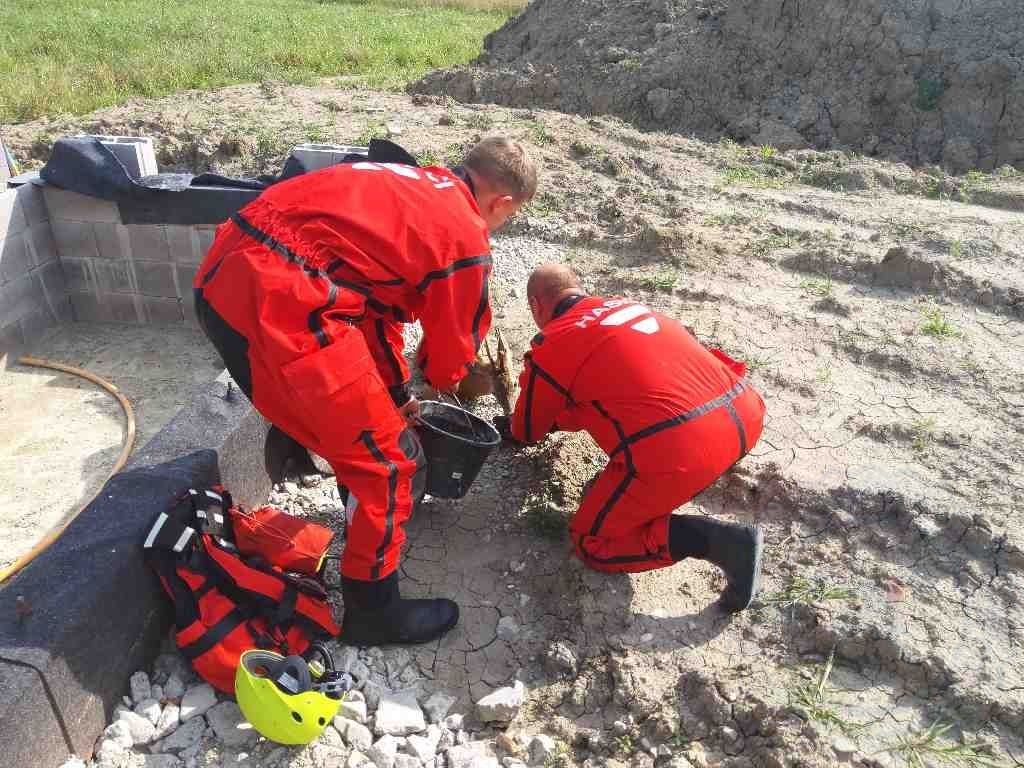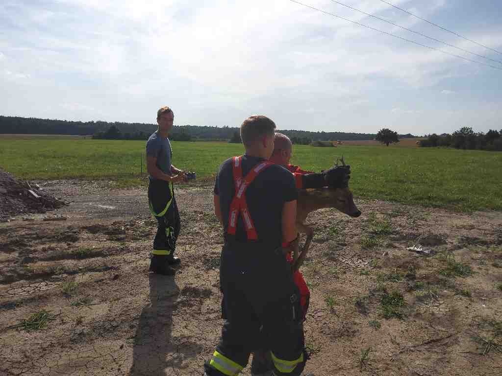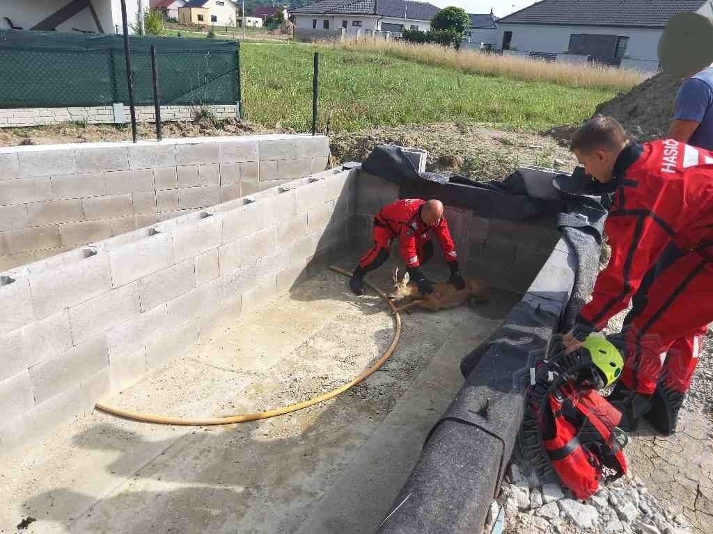 V Němčicích pardubičtí hasiči zachránili srnečka, který uvízl v prázdného bazénu a nemohl se dostat ven.
