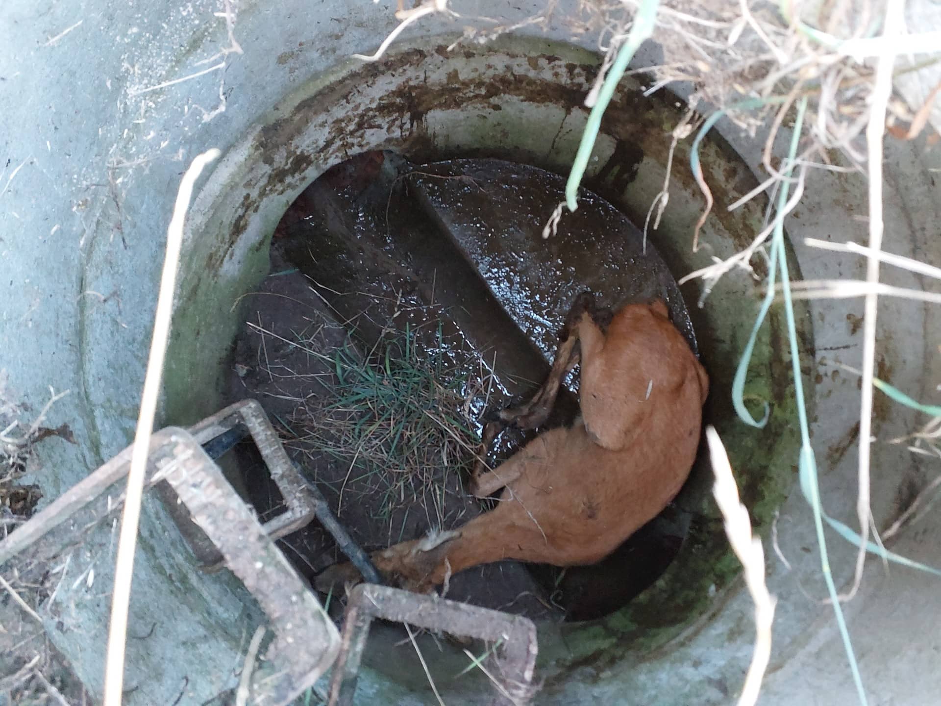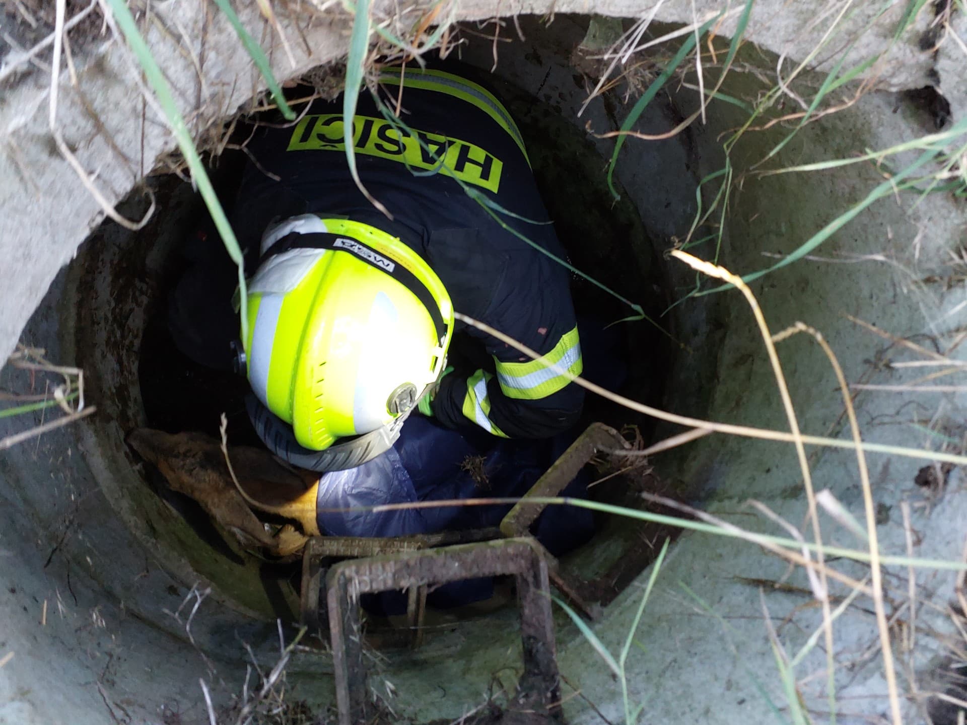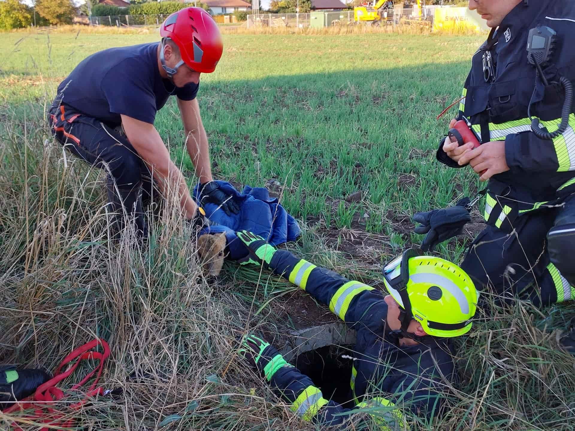 Hasiči zachránili srnu uvězněnou v hluboké skruži