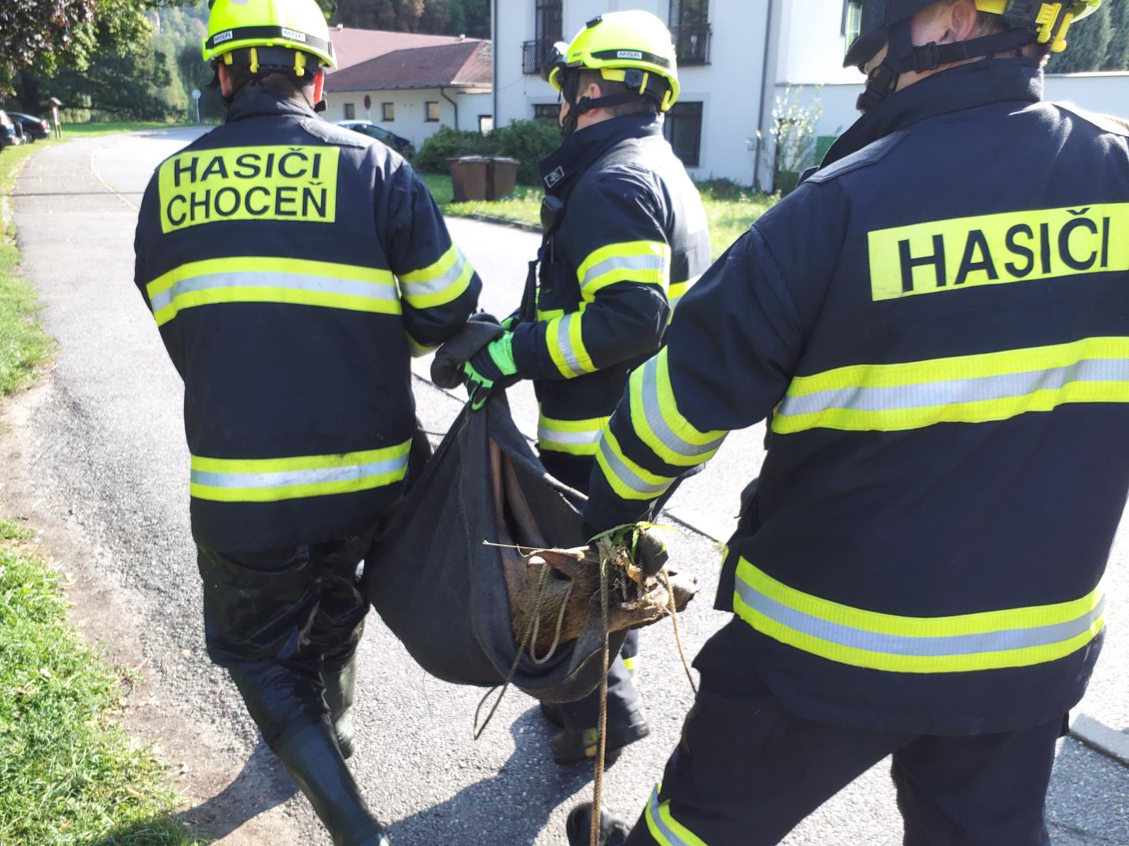 Na místě zasahovaly dvě jednotky hasičů – profesionální z Vysokého Mýta a dobrovolná z Chocně. Hasiči spustili člun na hladinu řeky. Za pomoci nastavovacího žebříku sestoupil hasič vystrojený do brodících kalhot do náhonu u pivovaru odkud byl srnec vytažen bez známek poranění. „Srnec hodně kopal a bránil se,“ říká velitel zásahu nprap. Miloslav Havlík ze stanice Vysoké Mýto. My dodáváme, že hasiči procházejí speciálním výcvikem, jak na zachraňované zvíře a co dělat v případě, když třeba zvíře „kope“…