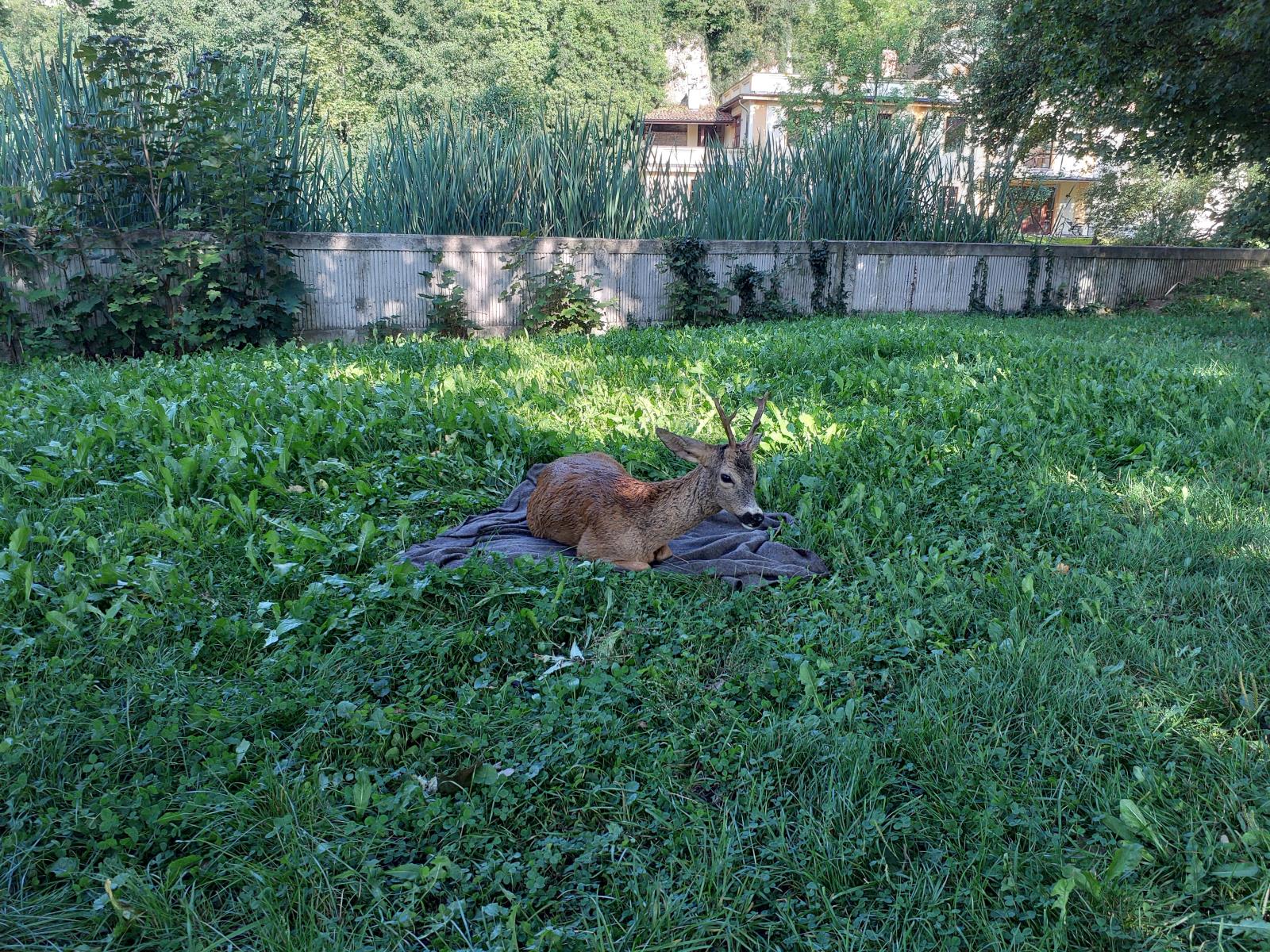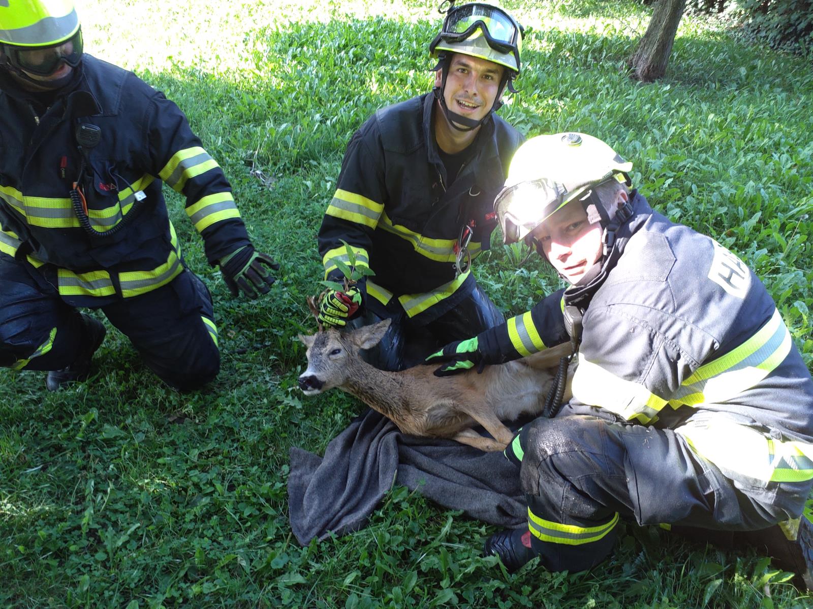 Po vytažení byl srnec vypuštěn do volné přírody.