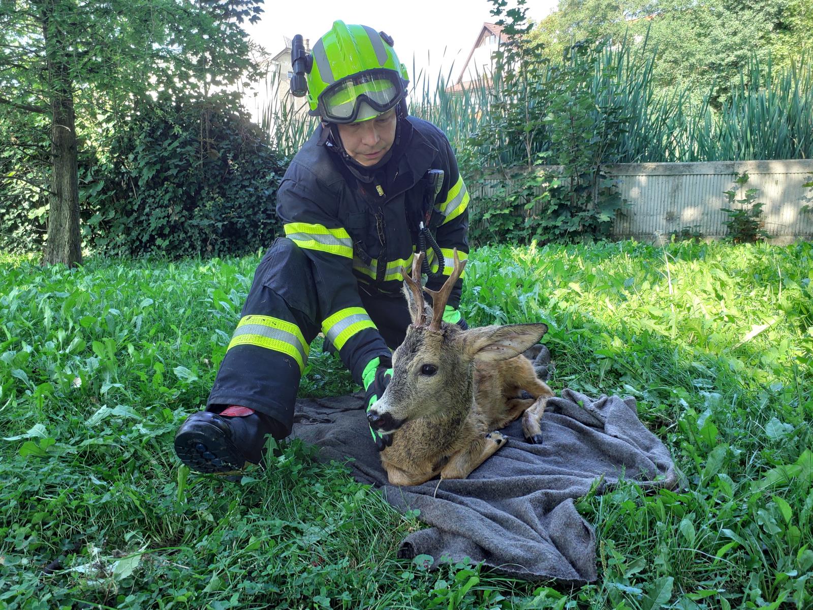 Hasiči zachraňovali srnečka z řeky