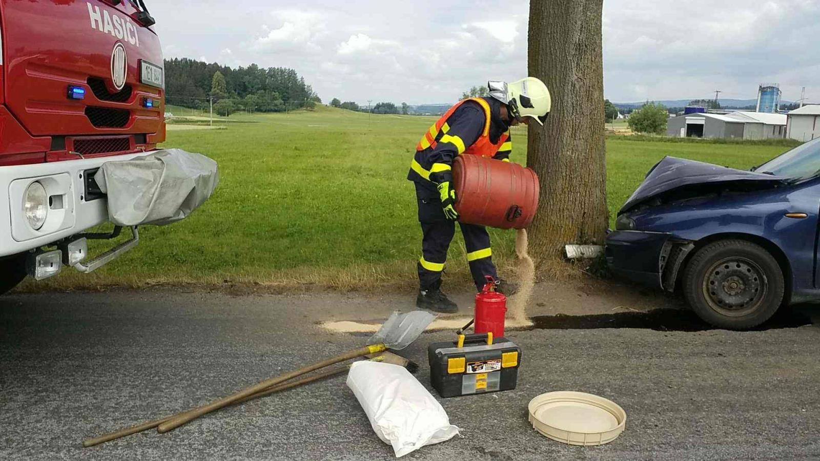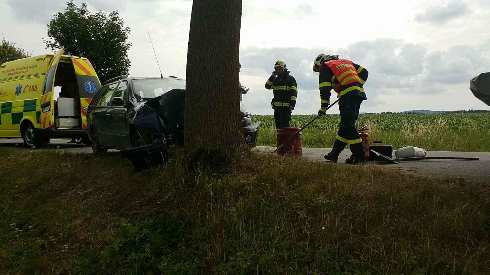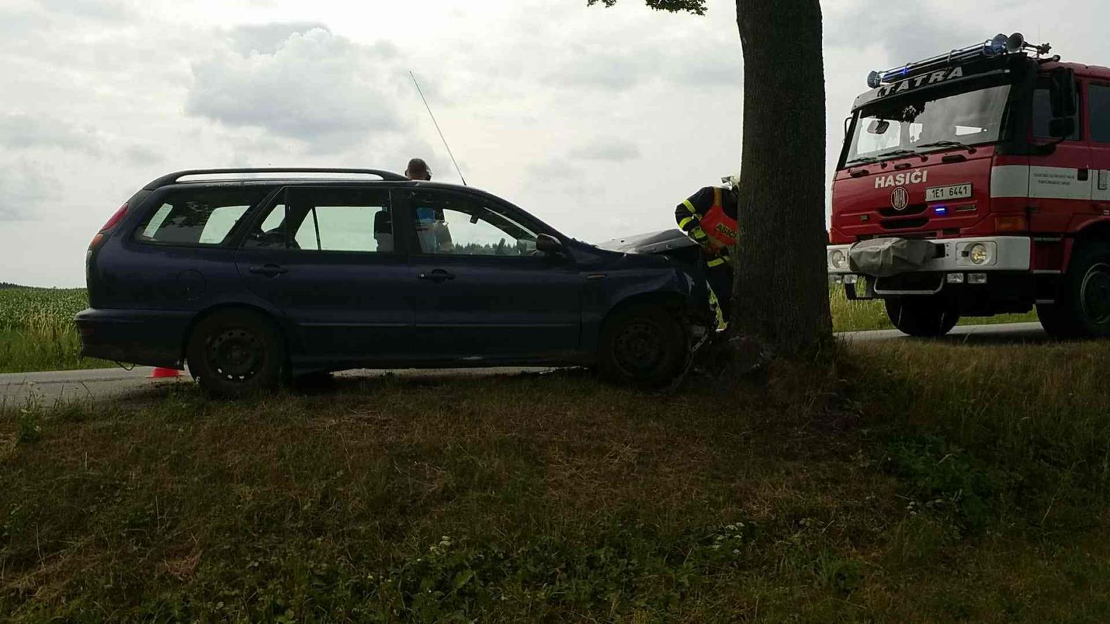 Hasiči zasahovali u dopravní nehody osobního vozidla, které narazilo do stromu.