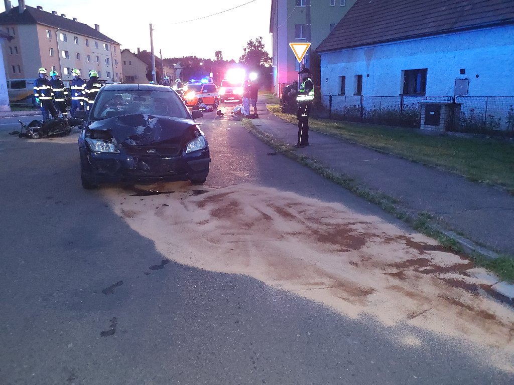 Hasiči zasahovali u nehody motocyklistky s autem