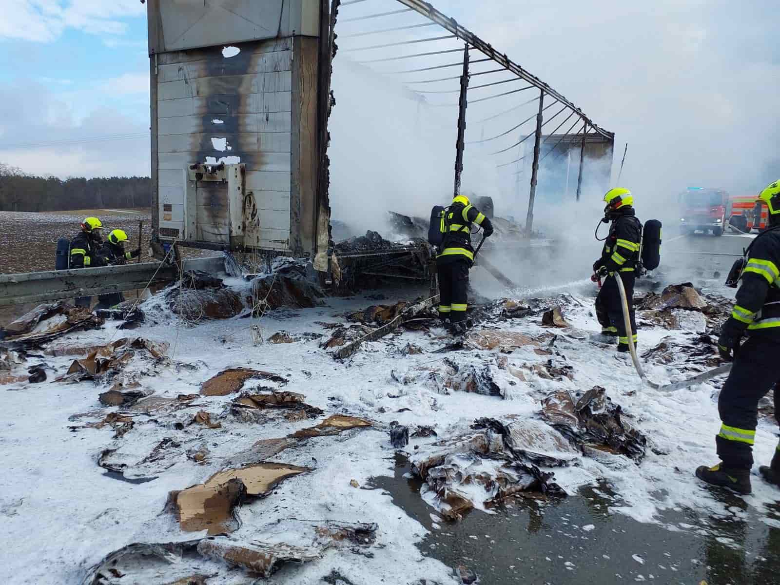 Na místě hasiči nasadili dva vodní proudy a pracovali v dýchací technice kvůli zakouřenému prostředí. Požárem byl zasažen celý návěs nákladního vozu. Hasiči postupně rozebírali jednotlivé palety, aby mohli dohasit skrytá ohniska a zabránit opětovnému vznícení. Zásah probíhal koordinovaně a bezpečně, při zásahu nebyly hlášeny žádné zraněné osoby.
