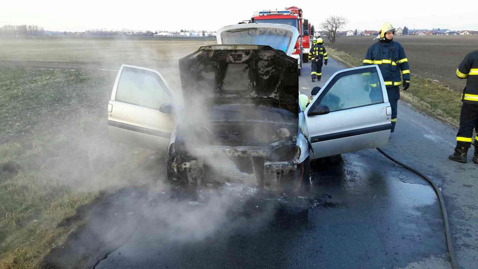 U požáru automobilu na silnici mezi obcemi Slatiňany a Orel zasahovali v pondělí 26.února 2018 v 16.29 hodin hasiči. Při příjezdu hasičů byl celý automobil Citroen Saxo v plamenech.