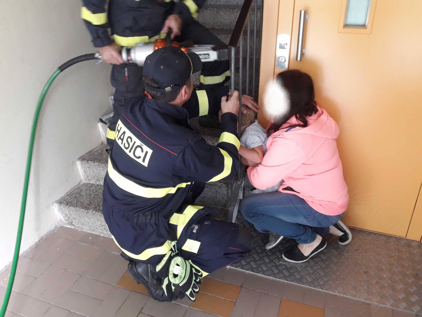 Pomoc hasičů potřeboval dnes 19. srpna po jedenácté hodině dopoledne ve Svitavách malý tříletý chlapec. Klučina prostrčil hlavu do zábradlí na schodišti bytového domu a už ji nemohl vrátit zpátky. Celá záchranná akce trvala pět minut. Pomocí hydraulického rozpínáku hasiči napružili zábradlí a chlapec byl vysvobozen. Po zásahu neutrpělo zábradlí ani malý šikula žádné známky poškození.