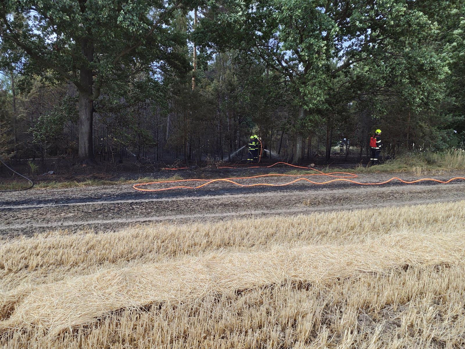 Do stejné obce tentokrát ale místní části Čejkovice vyjely jednotky ještě jednou, tentokrát hořelo pole i s úrodou o rozloze 2 hektary. Z pole se oheň rozšířil do přilehlého lesa, kde jsou zasaženy 4000 m2. Škoda bude vyčíslena v pondělí na základě vyjádření majitele lesa. Dle sdělení vyšetřovatele se jednalo v obou případech o technickou závadu – nepředpokládanou změnu provozních parametrů.