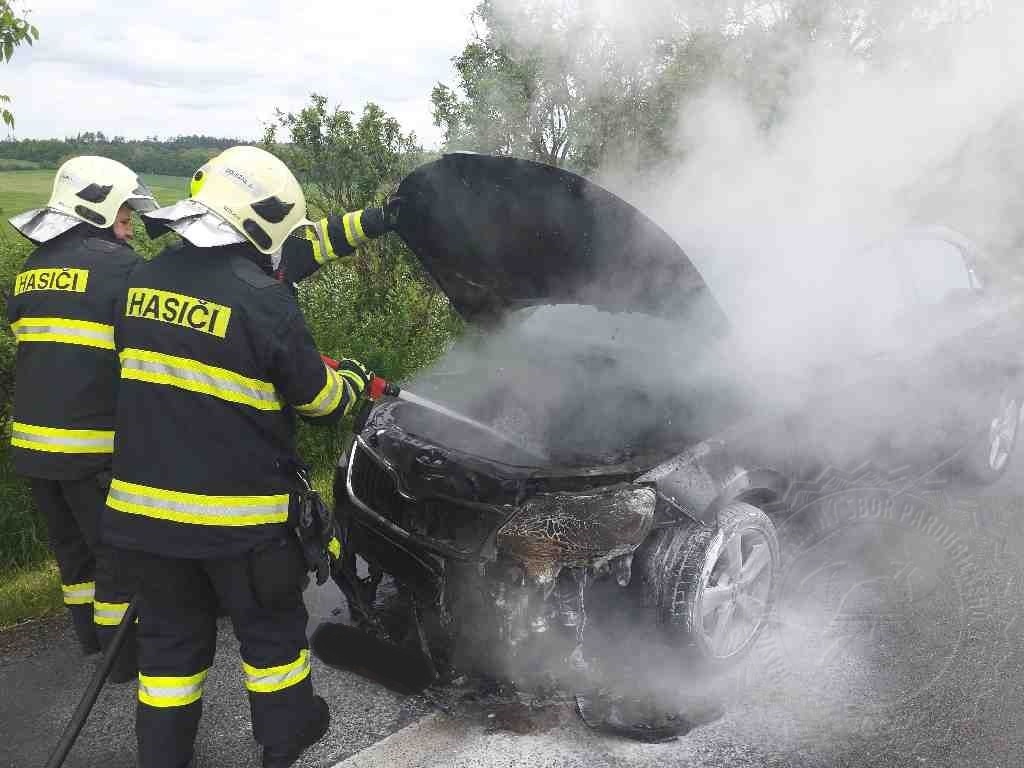 Na silnici I/35 před Vysokým Mýtem hořelo osobní vozidlo. Na místo vyjely dvě jednotky hasičů, profesionální a dobrovolná z Vysokého Mýta. Ještě před příjezdem hasičů byly částečně plameny uhašeny ručními hasícími přístroji. Hasiči oheň zcela zlikvidovali vysokotlakým proudem a zasypali drobný únik provozních kapalin.
