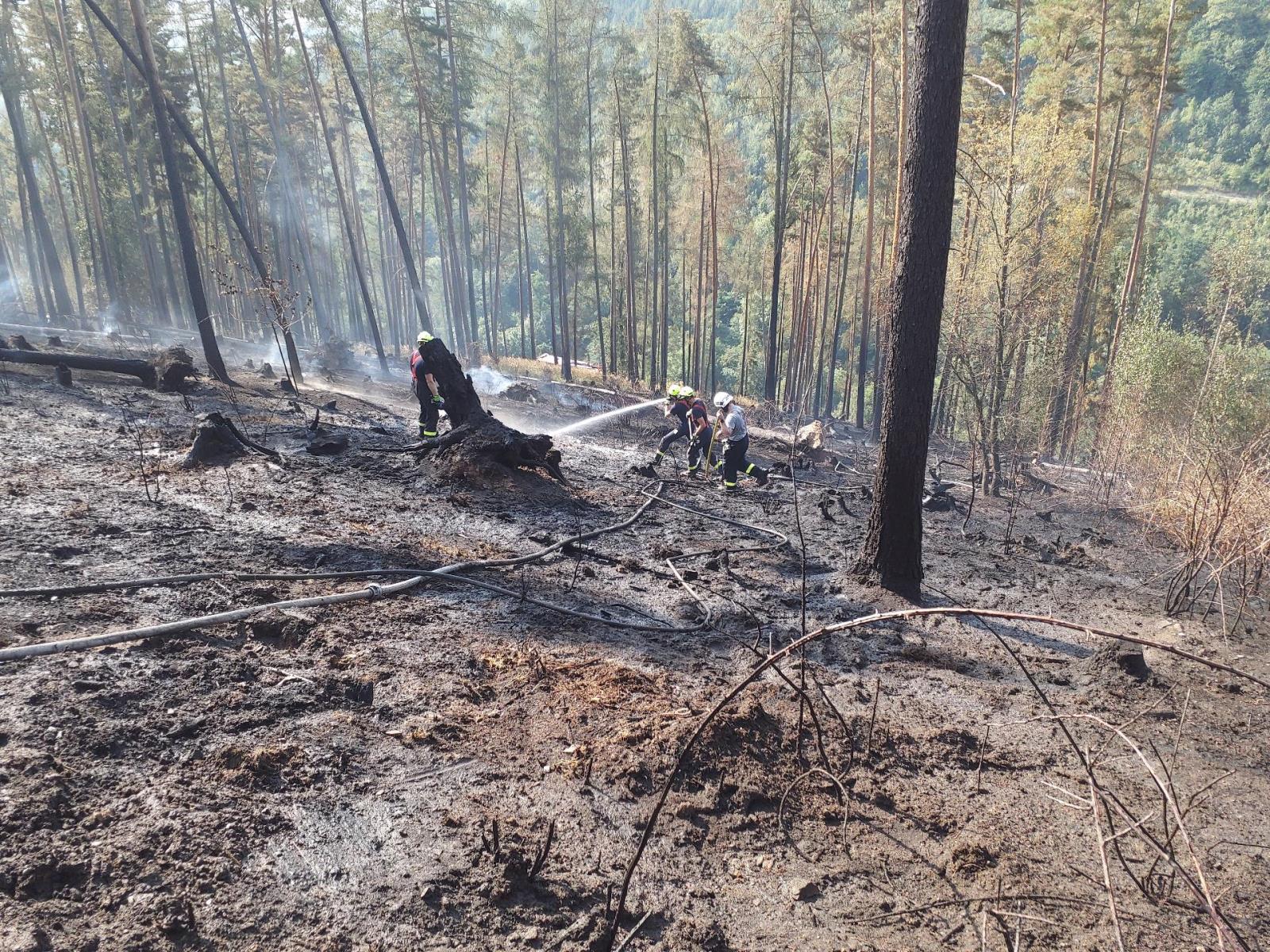 Na tomto místě hořelo během prázdnin již potřetí. Tento požár je ale svou rozlohou největší. Zásah je pro hasiče velmi komplikovaný, a to pro vysoké venkovní teploty a pro hodně členitý kopcovitý terén.