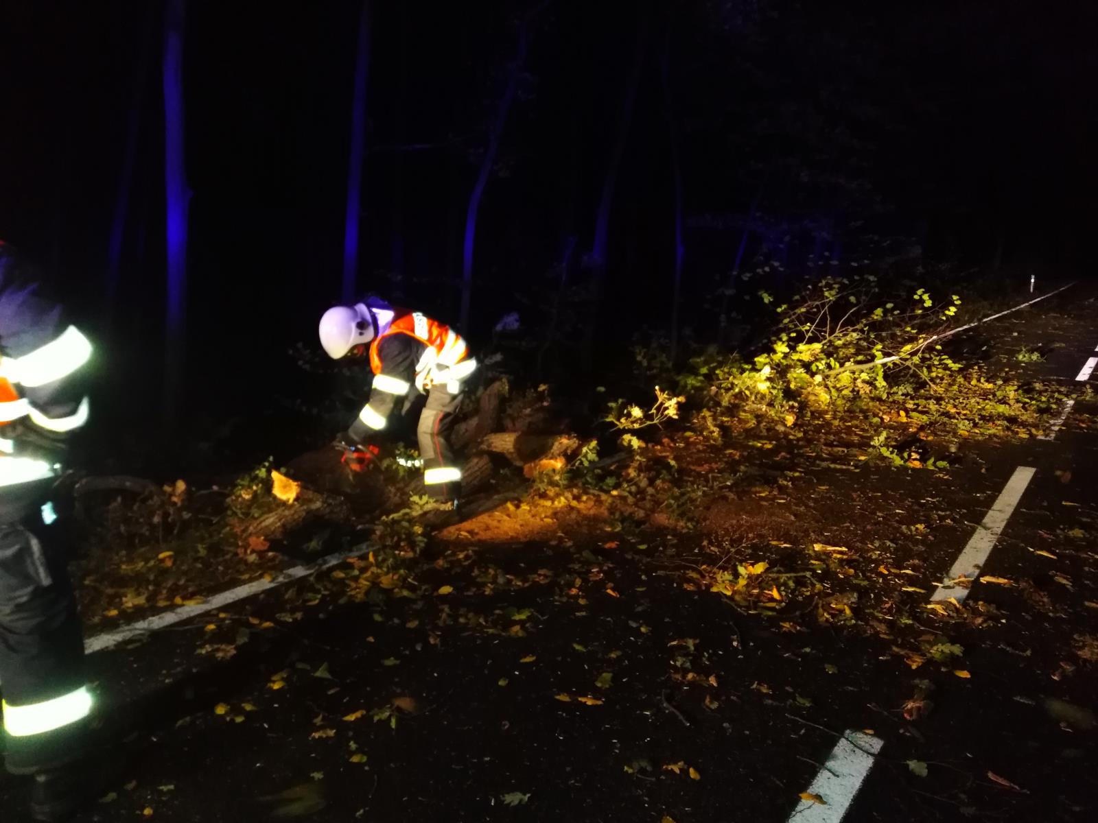 Jednalo se zejména o popadané stromy a polámané větve, které hasiči rozřezávali pomocí motorových pil.