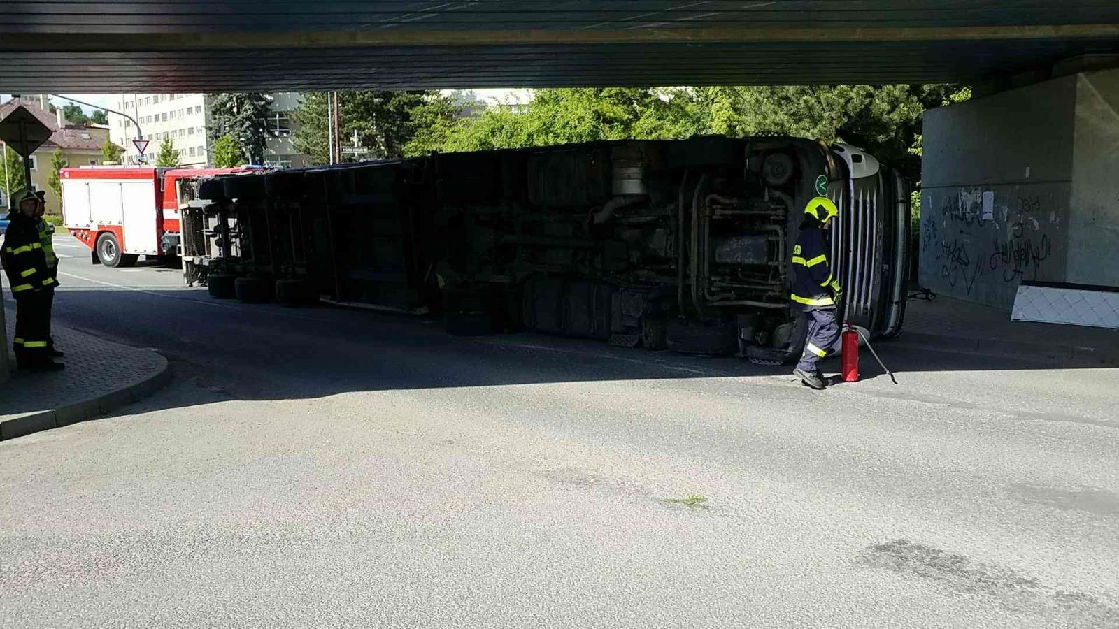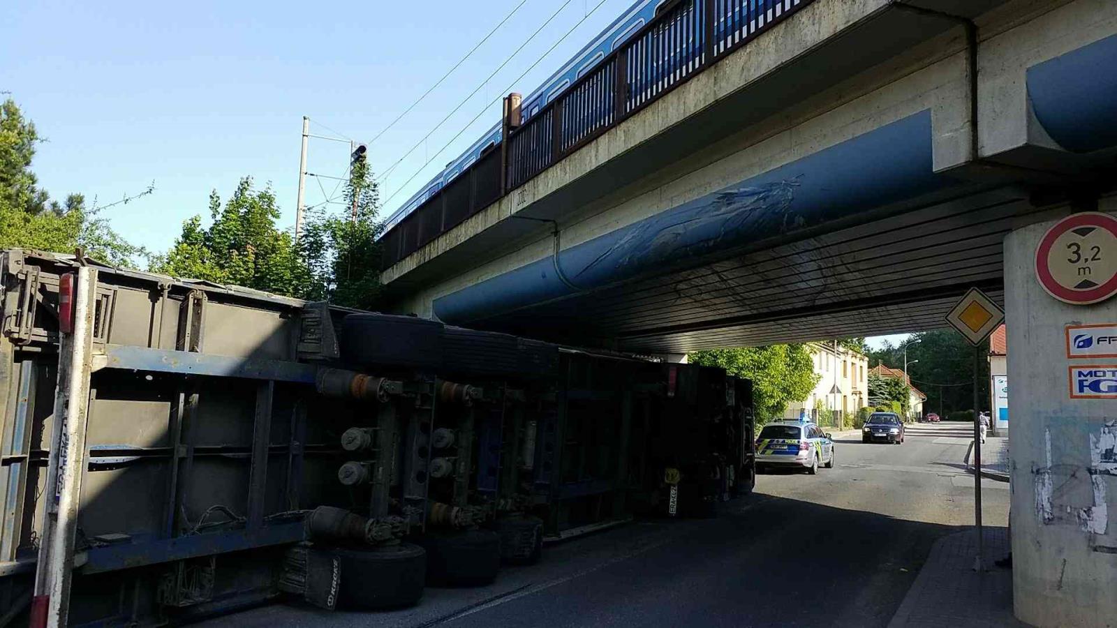 K nehodě kamionu vyjížděli v pondělí 21. května v 16.27 hodin profesionální hasiči z Ústí nad Orlicí do ulice Třebovská v Ústí nad Orlicí. Na místo byli přivoláni i hasiči SŽDC Česká Třebová. Kamion se pravděpodobně „nevešel“ pod most a převrátil se na bok. Při nehodě byl řidič zraněn a předán do péče zdravotníkům. Hasiči zajistili kamion proti úniku provozních náplní a vzniku požáru. Drobný únik provozních náplní hasiči včas zastavili u výpusti do kanalizace pomocí sorpčních polštářů. Řidič si zajistil firmu na vyproštění kamionu z pod mostu sám.