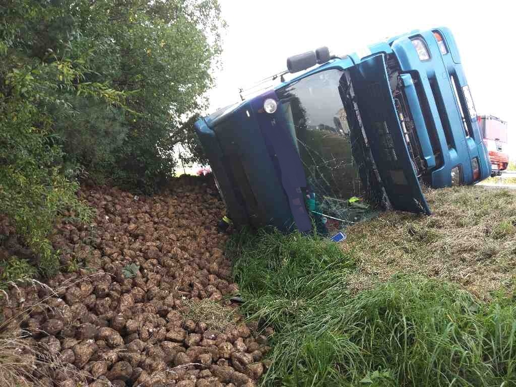 V Dražkovicích na silnici I/37 se v pondělí 13. září dopoledne převrátil kamion. Na komunikaci se okamžitě začaly tvořit kolony. Na místo byla ihned povolána jednotka profesionálních hasičů z Pardubic. Řidič se z kabiny kamionu dostal sám ještě před příjezdem hasičů. Přesto byl zdravotnickou záchrannou službou převezen do nemocnice na vyšetření. Kamion s návěsem zůstal po nehodě na boku a náklad, kterým byla řepa, skončila vysypaná v příkopu. Po nehodě z kamionu začal vytékat hydraulický olej, který jednotka ihned zachytávala do nádoby. V nádrži kamionu bylo zhruba 150 litrů nafty a po příjezdu protiplynového automobilu hasiči začali naftu přečerpávat, aby neunikla do zeminy a nezpůsobila tak ekologickou havárii. Po odstranění všech následků nehody a odčerpání provozních kapalin, byl speciální technikou kamion s návěsem vyproštěn z příkopu.