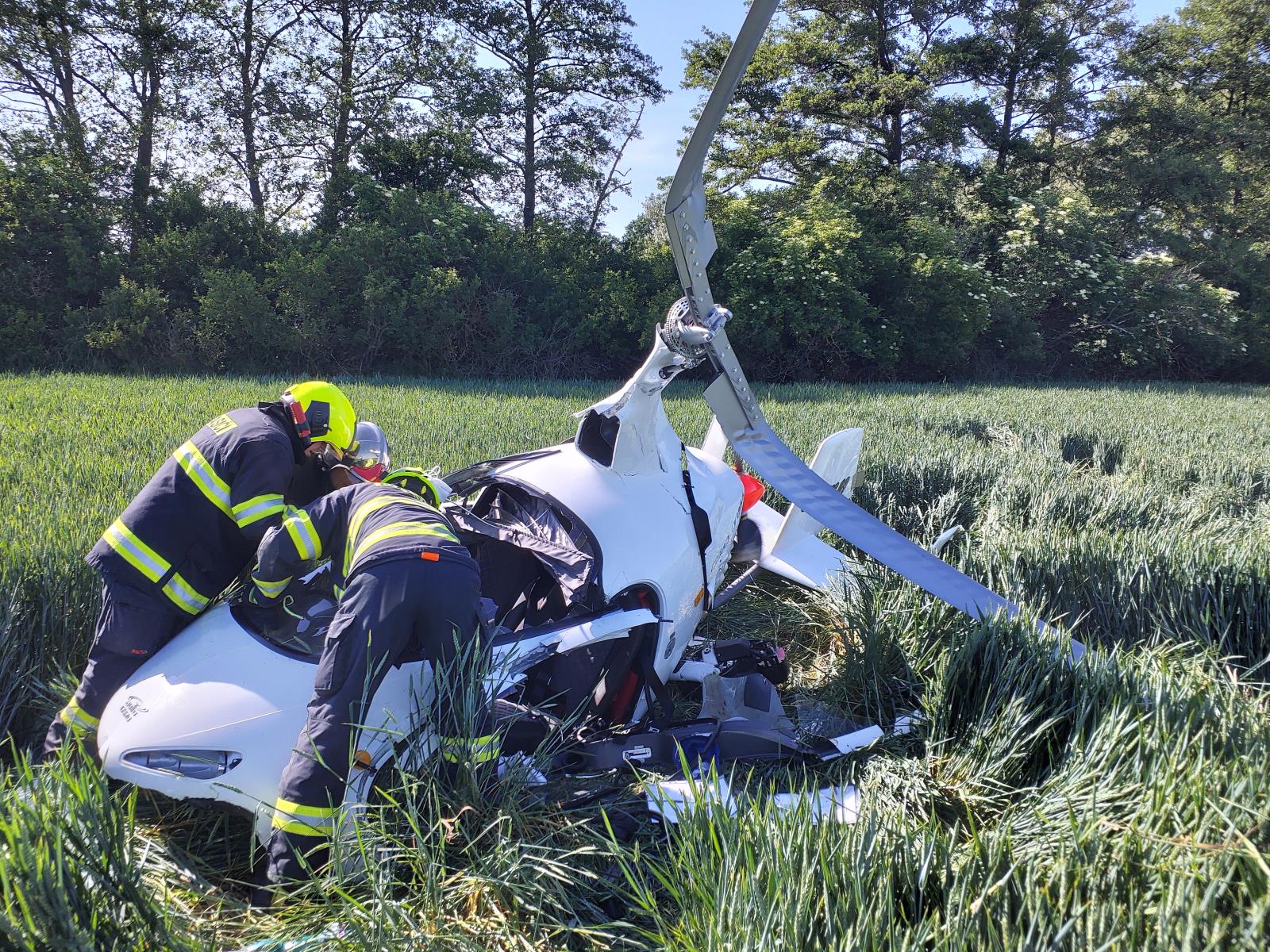 K letecké nehodě dvoumístného vírníku u obce Kunětice vyjely po 15 hodině jednotky IZS. Dvě osoby posádky z vírníku utrpěly lehká zranění, do péče si je převzala Zdravotnická záchranná služba. Hasiči zajistili vrtulník proti požáru. Příčina nehody se bude vyšetřovat.