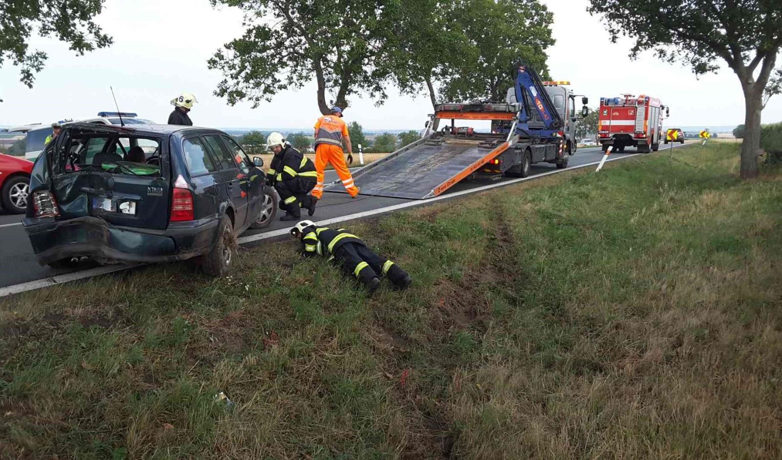 Řidička zde skončila  jízdu v příkopu  nárazem zadní částí vozidla  do stromu. Na místě ošetřila dvě zraněné osoby Zdravotnická záchranná služba a řidičku vozidla následně pomohli hasiči transportovat do sanity  ZZS, která zraněnou převezla do nemocnice.