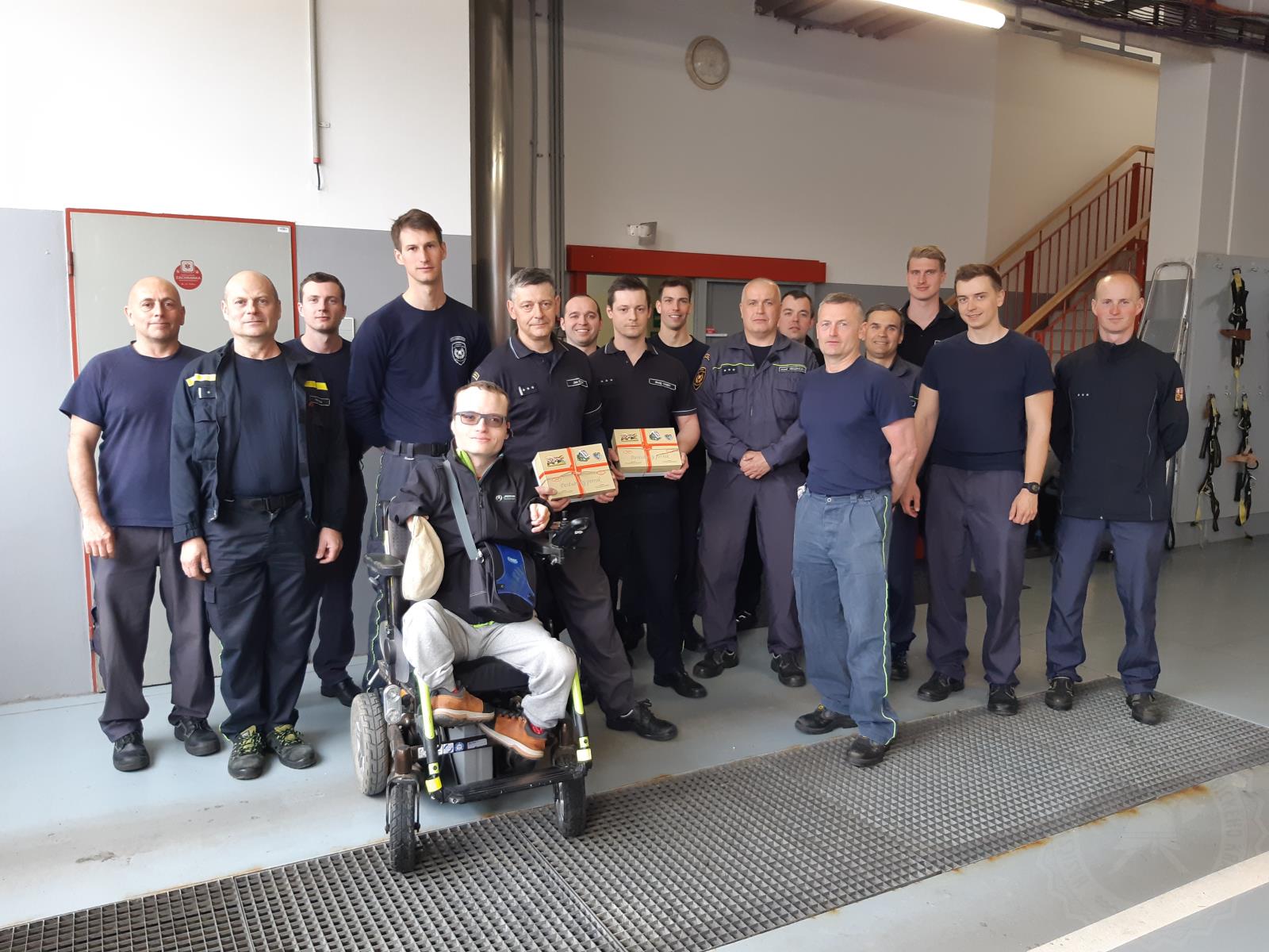 Ve středu 6. dubna navštívil stanici v Pardubicích Ondřej Mach, který v potopeném voze seděl. „Upřímně říkám, že nechápu, jak jsem to mohl přežít. Neměl jsem odvahu do vraku po odtahu kouknout. Z dopravní nehody jsem si odnesl naražená žebra, pohmožděniny, a hlavně silné podchlazení. Bez tak rychlého zásahu IZS bych tu nebyl,“ říká pokorně a s úctou Ondřej Mach, který osobně za zásah hasičů potápěčů z Pardubic, poděkoval. Setkání se zachráněným Ondrou se účastnila celá sloužící směna.