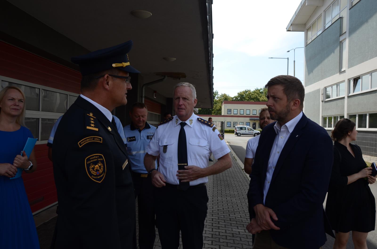 Ve čtvrtek 28. července zavítali na centrální požární stanici do Pardubic ministr vnitra Mgr. Bc. Vít Rakušan, generální ředitel genpor. Ing. Vladimír Vlček, Ph.D., MBA, i první náměstek policejního prezídia genmjr. Ing. Tomáš Lerch. V pravé poledne se všichni setkali s krajským ředitelem HZS Pardubického kraje plk. Mgr. Alešem Černohorským a nejvyšším managementem HZS Pardubického kraje.