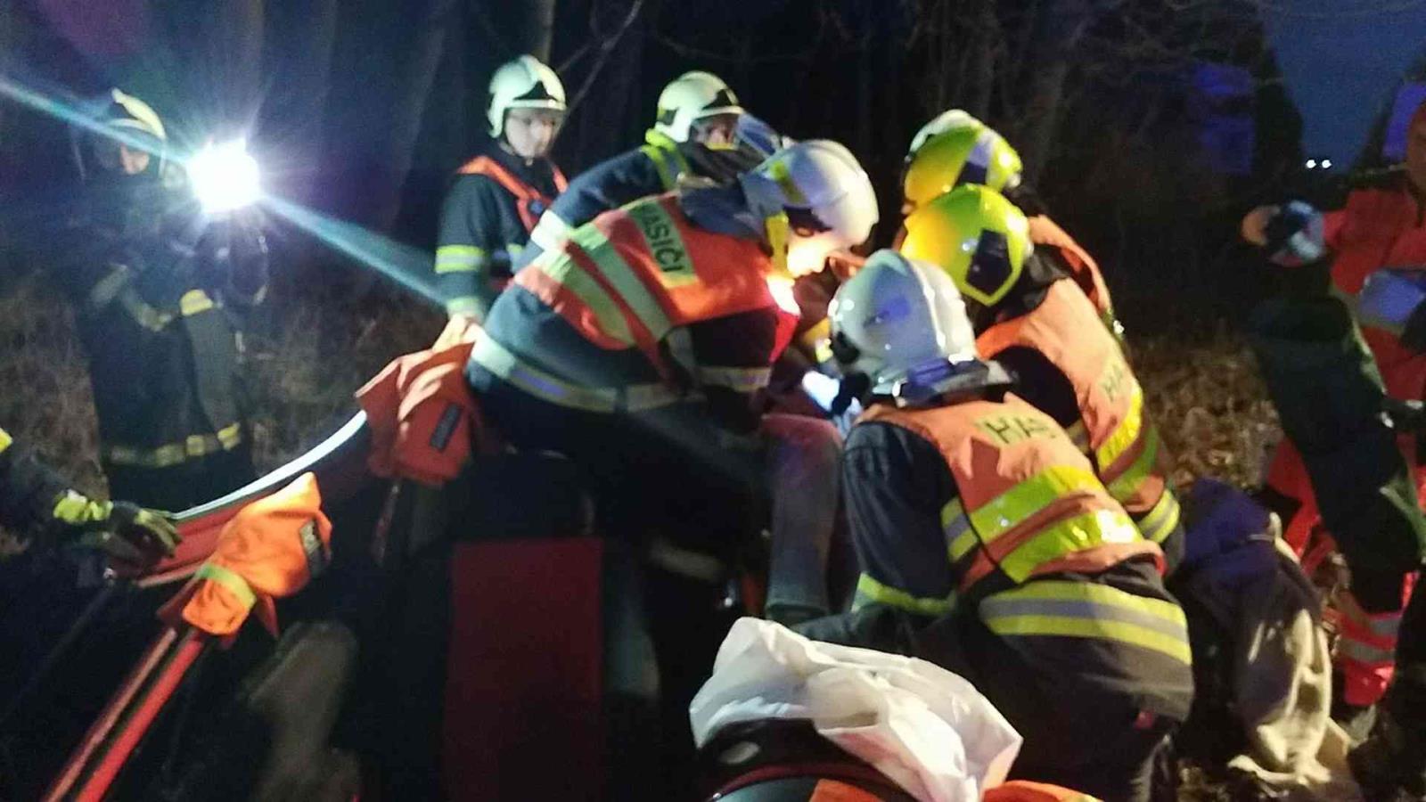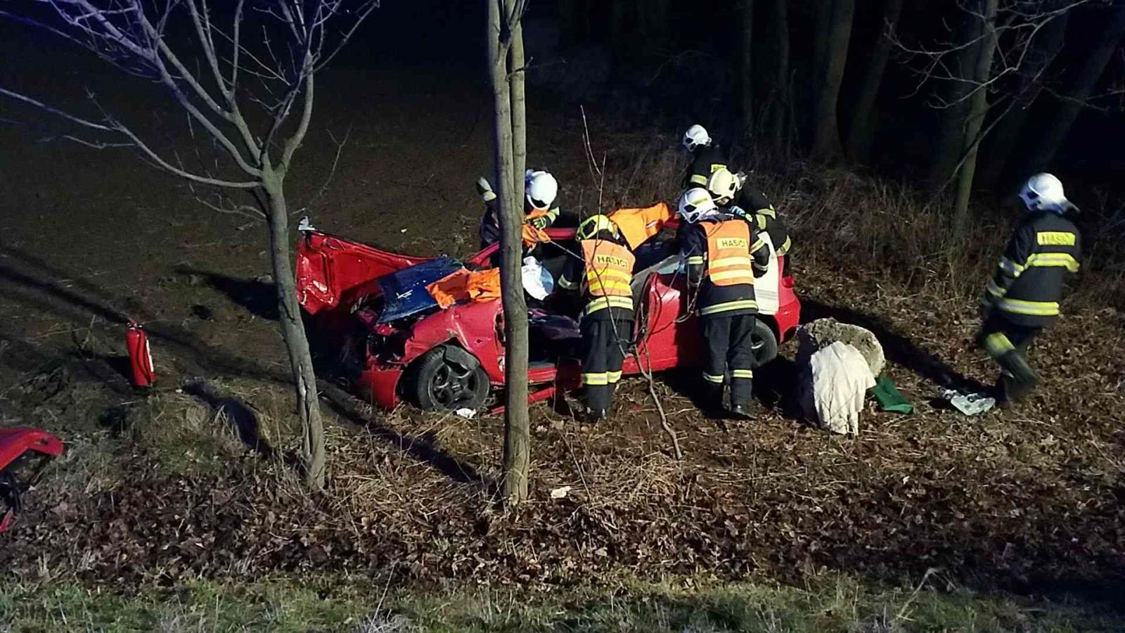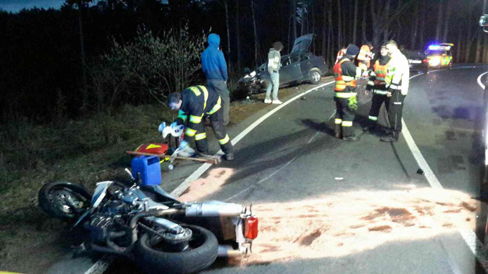 Motocyklista po střetu s vozem zemřel, zaklíněného řidiče v autě vyprostili hasiči