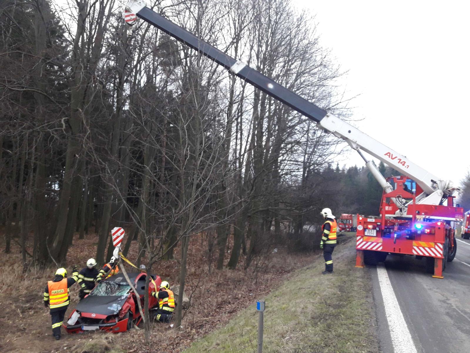 K nehodě motocyklisty s osobním autem vyjížděli hasiči na silnici I/43 u Cotkytle ve čtvrtek 5. dubna